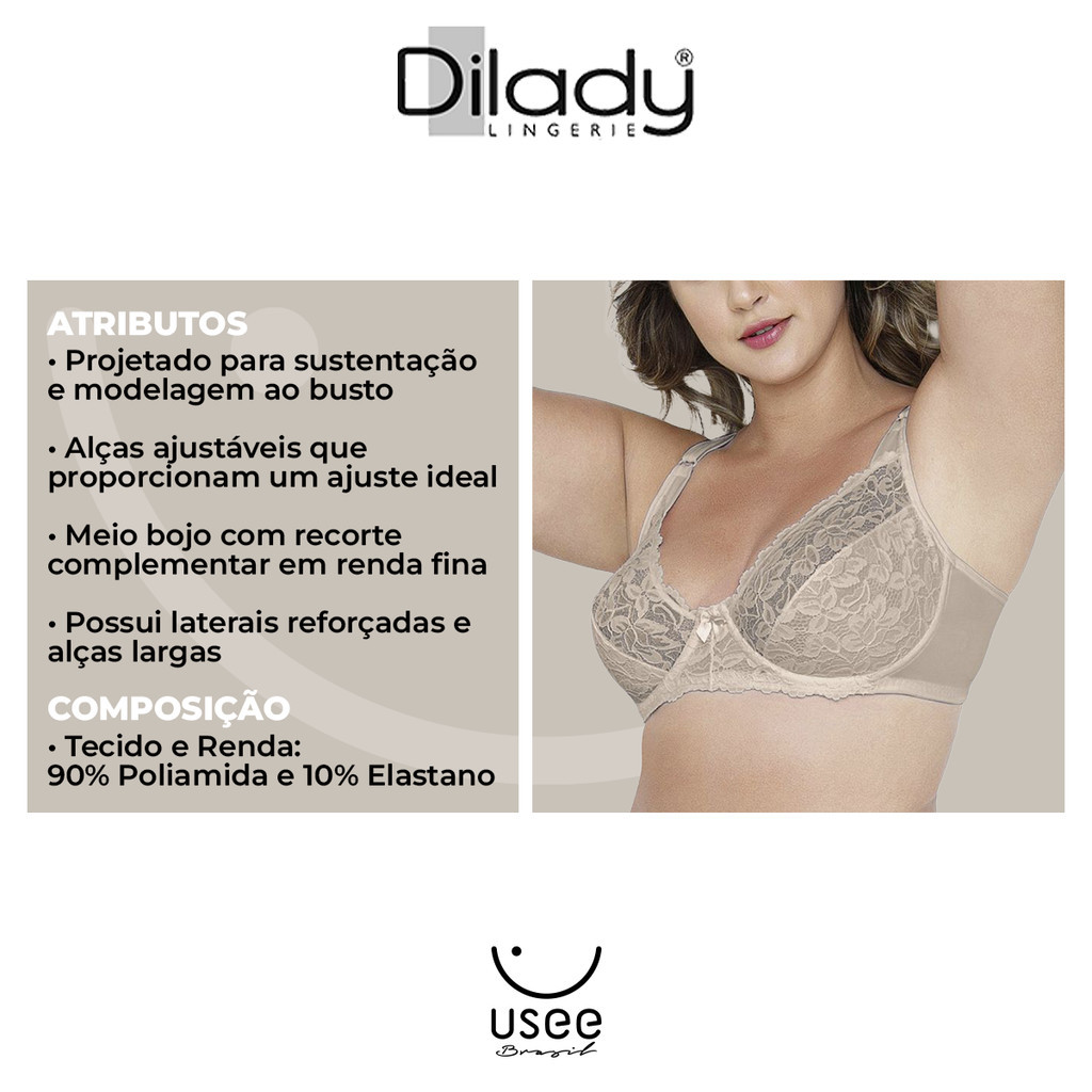Sutiã Rendado Meio Bojo Com Aro Sensual Sustentação Dilady