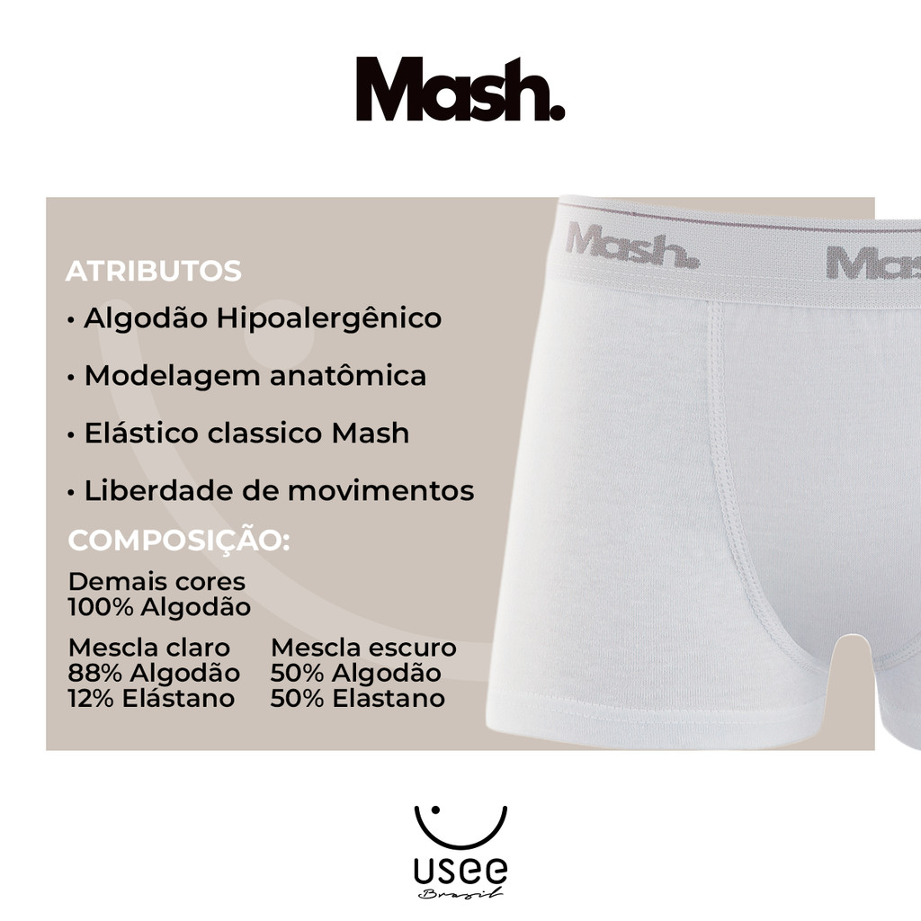 Kit 6 Cueca Boxer Algodão Infantil Elastico Mash