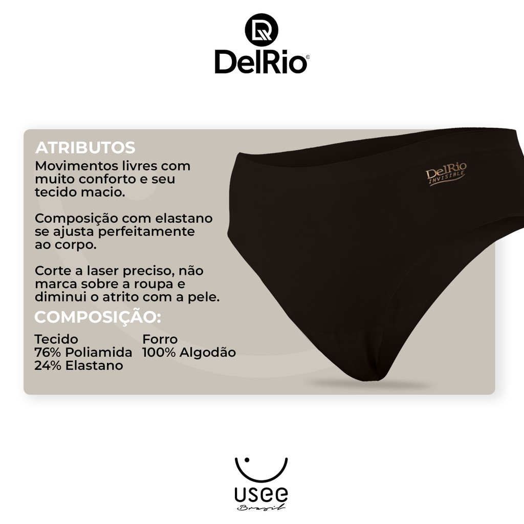 Kit Com 6 Calcinhas de Laser Cut Adulto Feminino Delrio