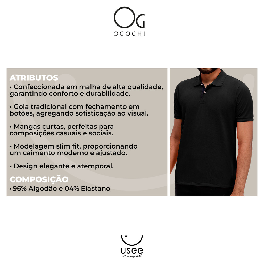 Camiseta Polo Manga Curta Casual Slim Malha Algodão Ogochi Original