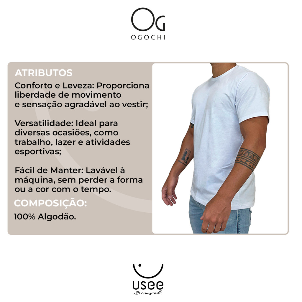 Camiseta Masculina Básica 100% Algodão Essencial Slim Confortável Ogochi