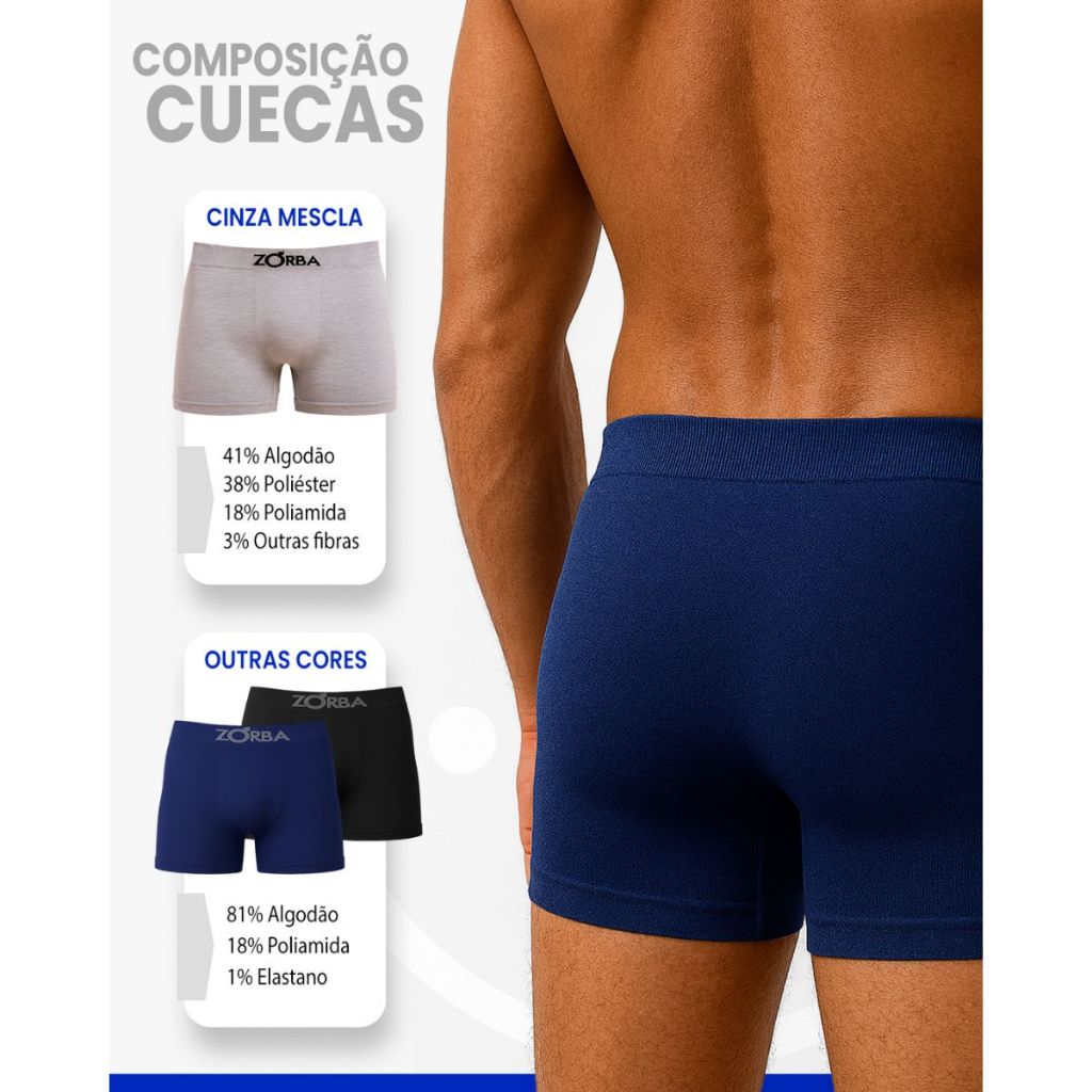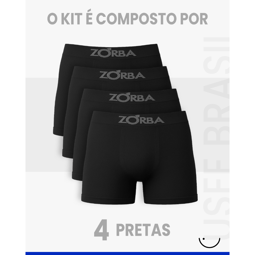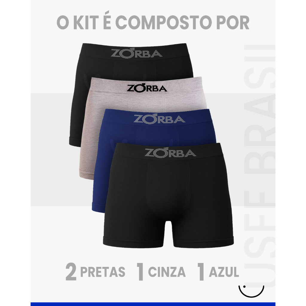 Kit 4 Cuecas Algodão Sem Costura Box Boxer Masculina Confortável Zorba
