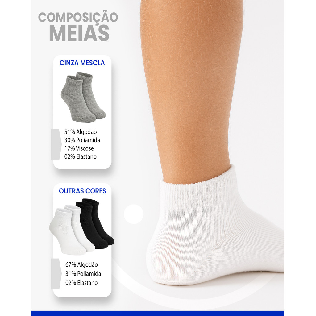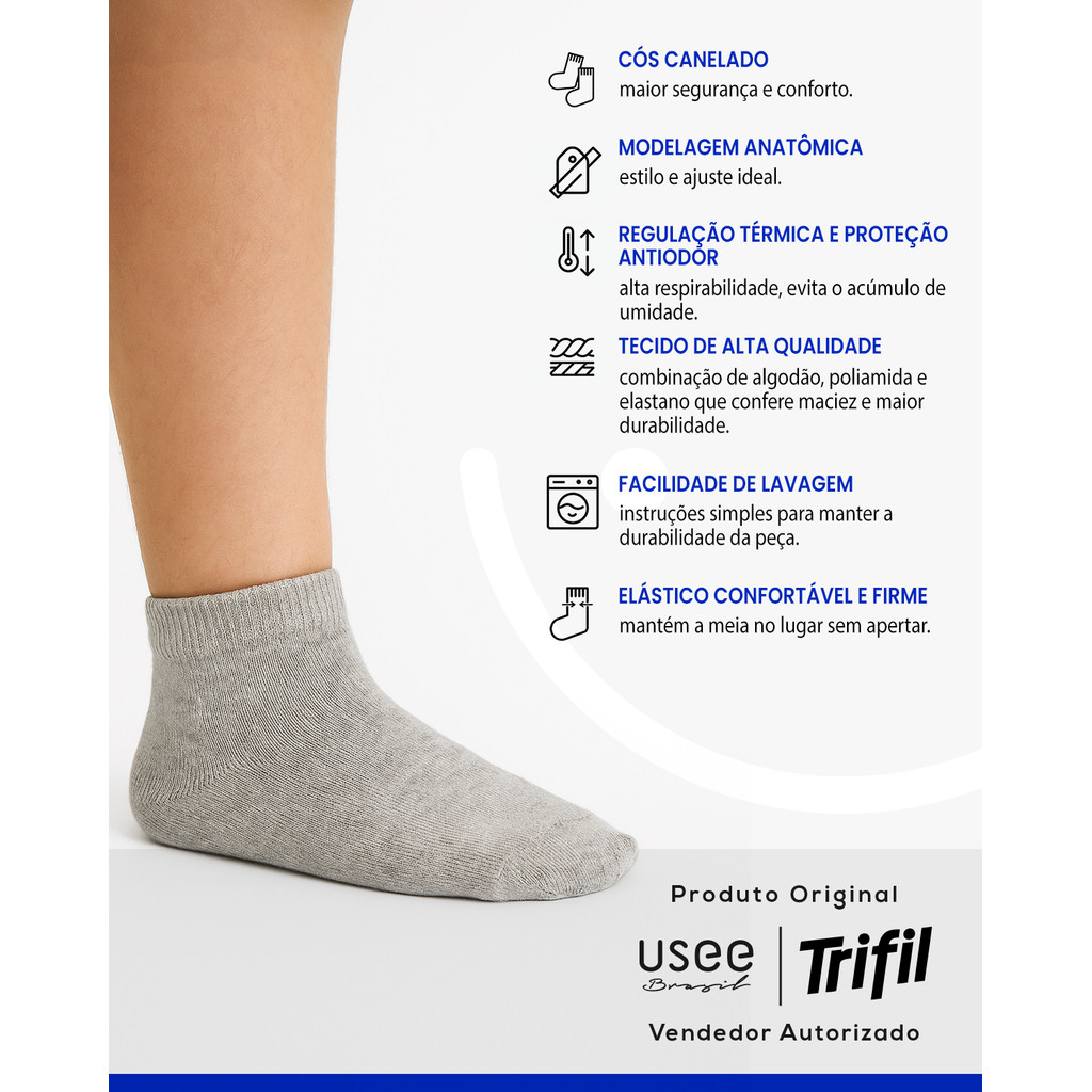 Kit com 12 Pares de Meias Cano Médio Confortável Infantil Kids Trifil