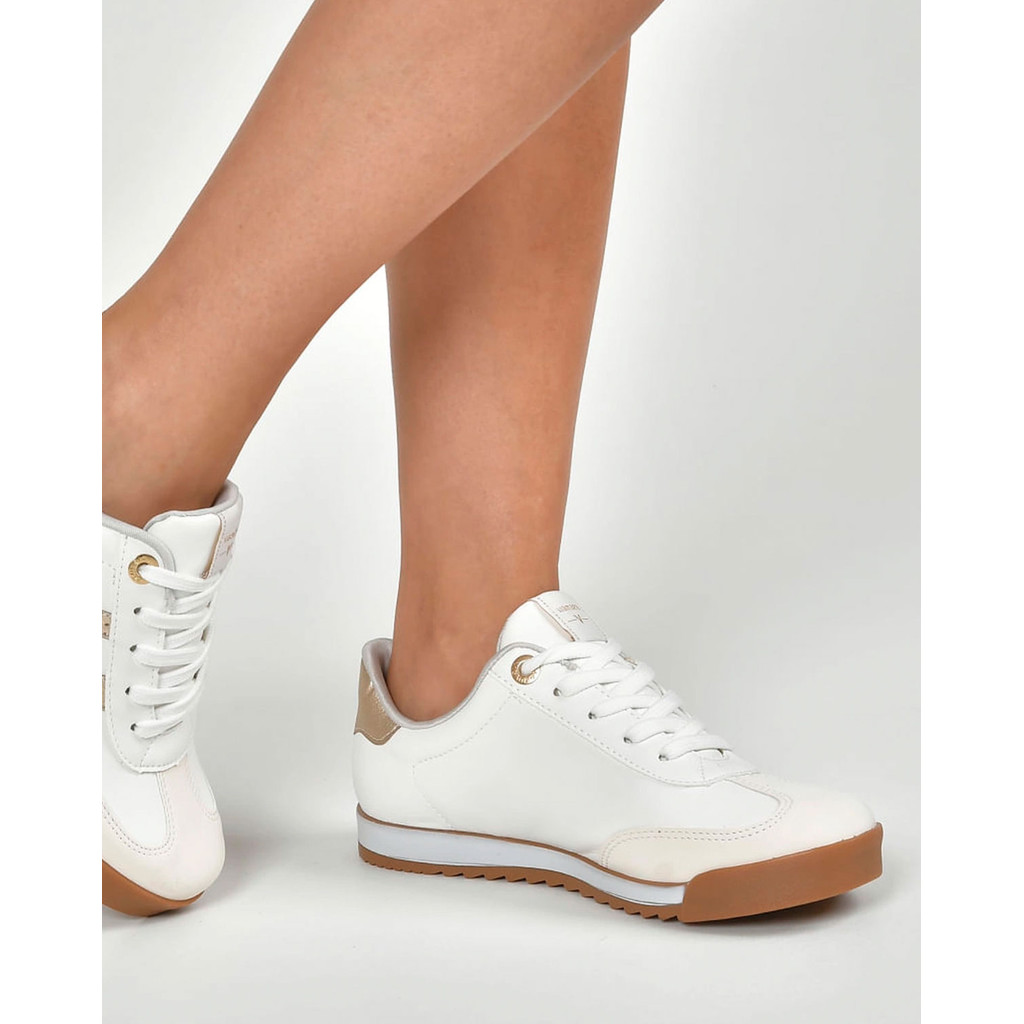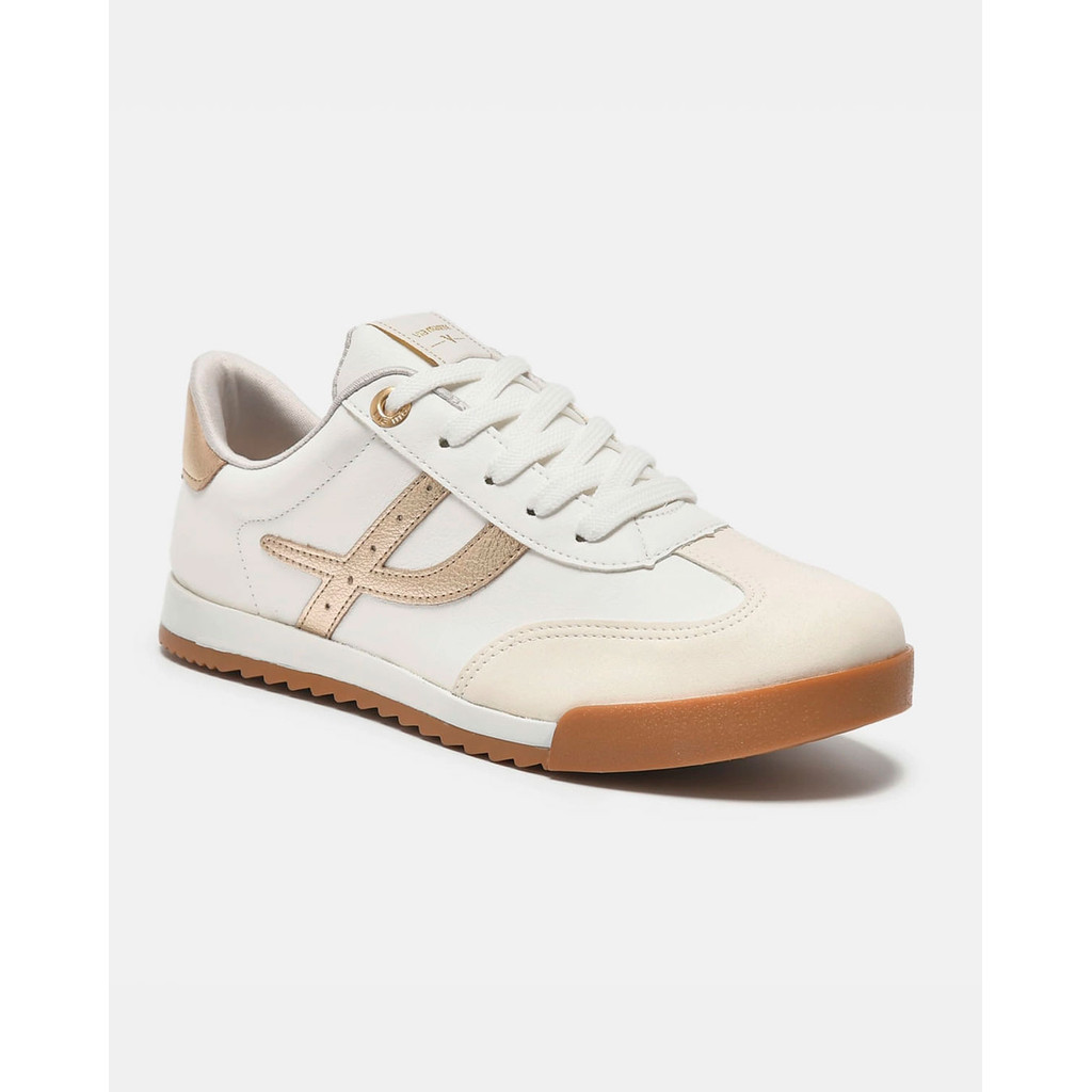 Tênis Feminino Via Marte Casual Sola Reta Branco e Dourado Leve Macio Confortável Original