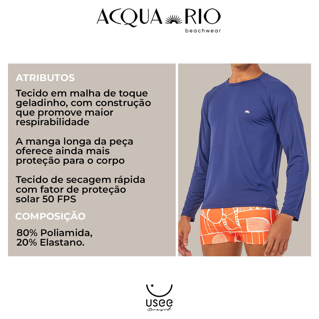 Camiseta Com Proteção Solar UV+ Praia Piscina Acqua Rio