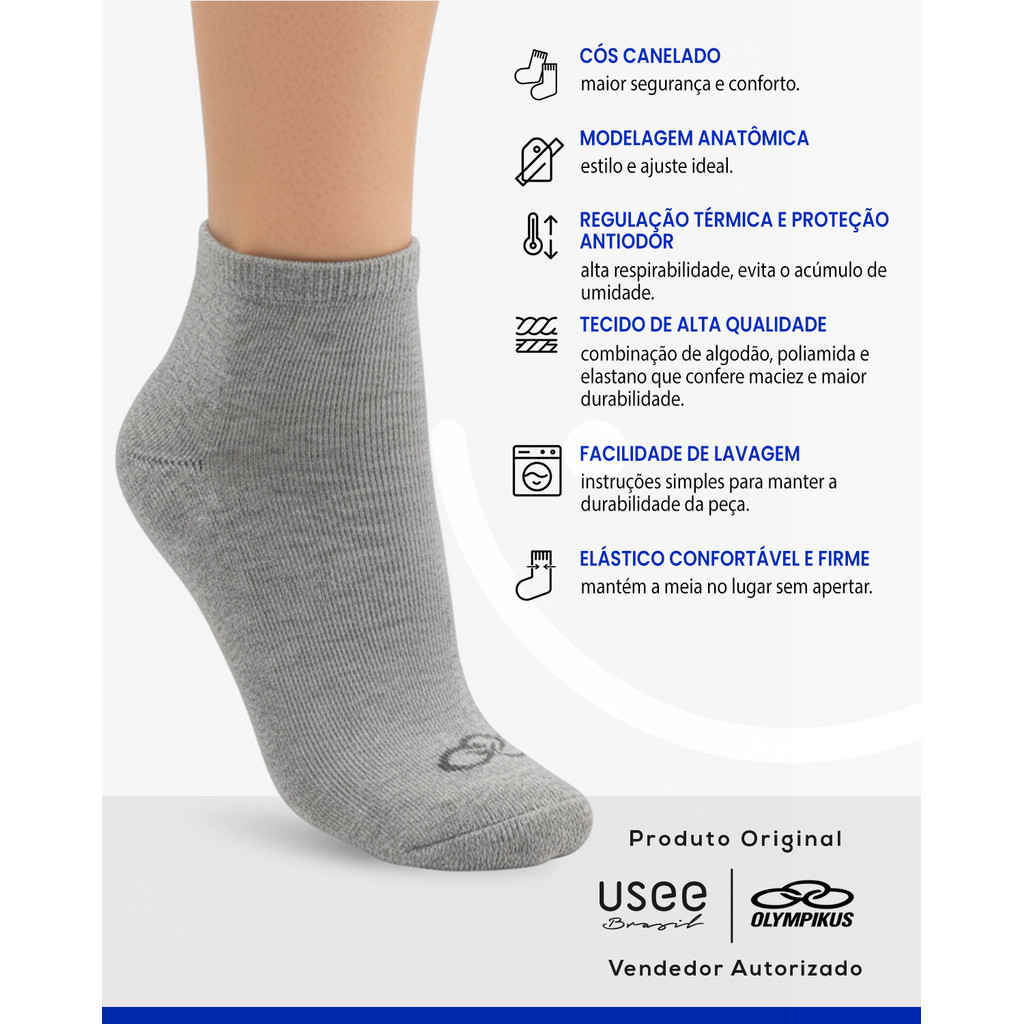 Kit Com 3 Pares de Meias Cano Curto Confortável Adulto Original Olympikus
