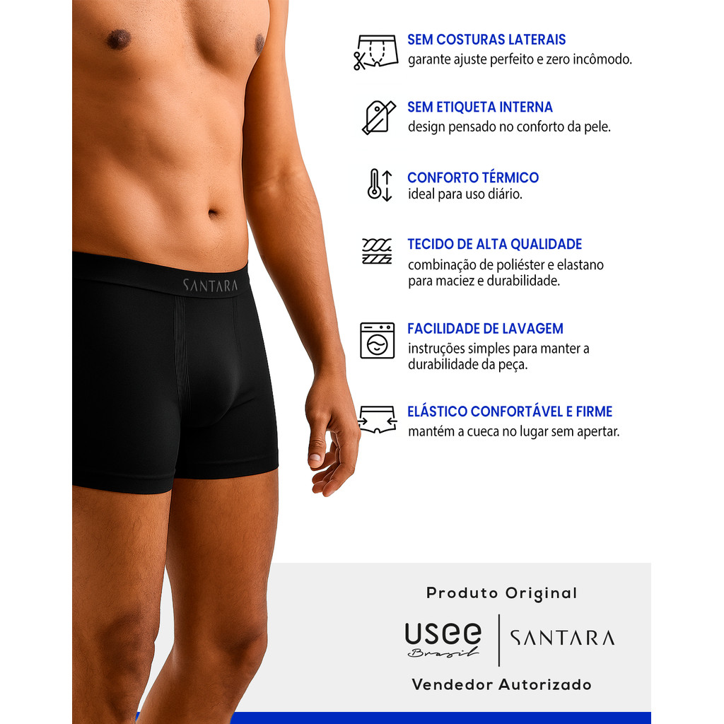 Kit 3 Cuecas Boxer Masculina Adulto Microfibra Sem Costura Premium Santara
