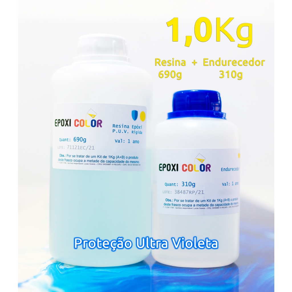 Resina Epóxi Incolor Translúcida Rígida com Endurecedor (kit 1Kg A+B) - Epoxi Color