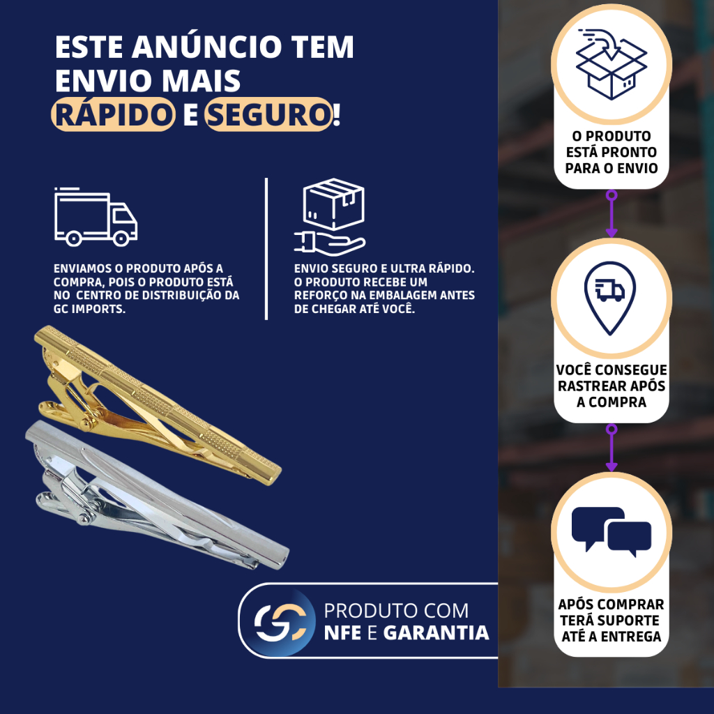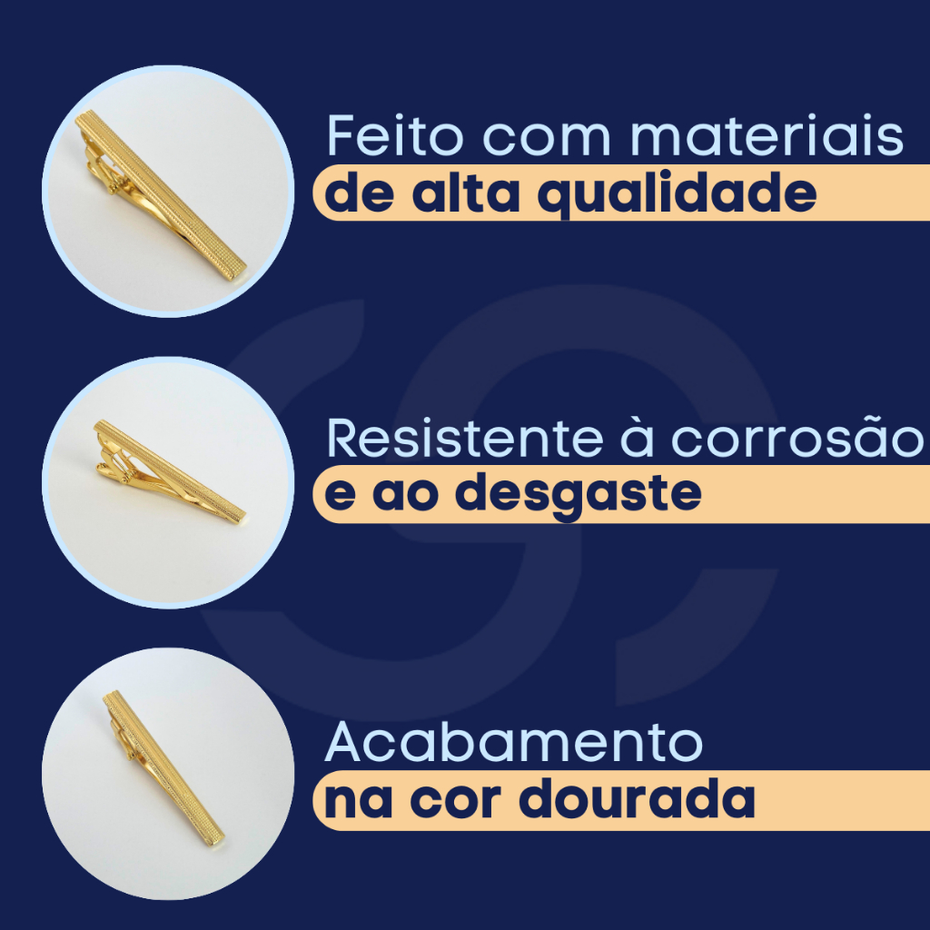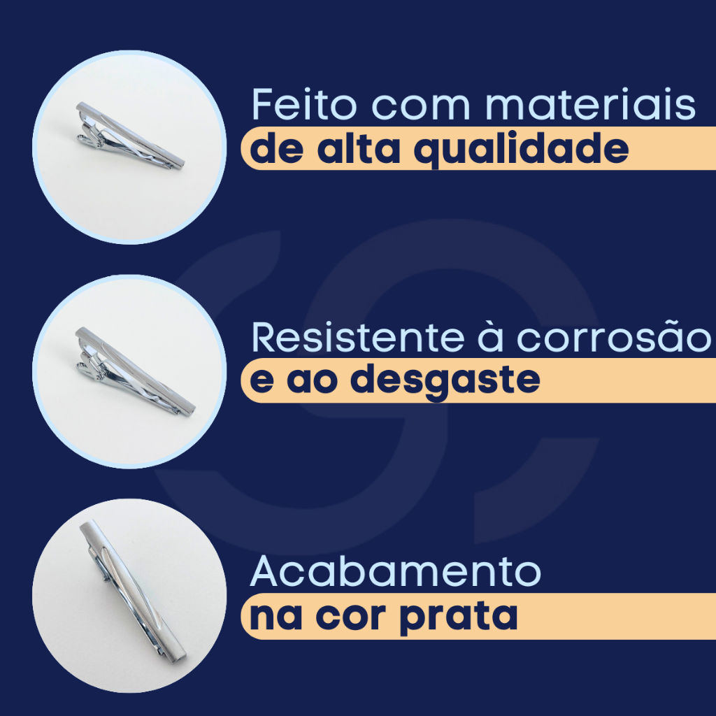 Prendedor de Gravata Slim e Semi Slim Prateado e Dourado