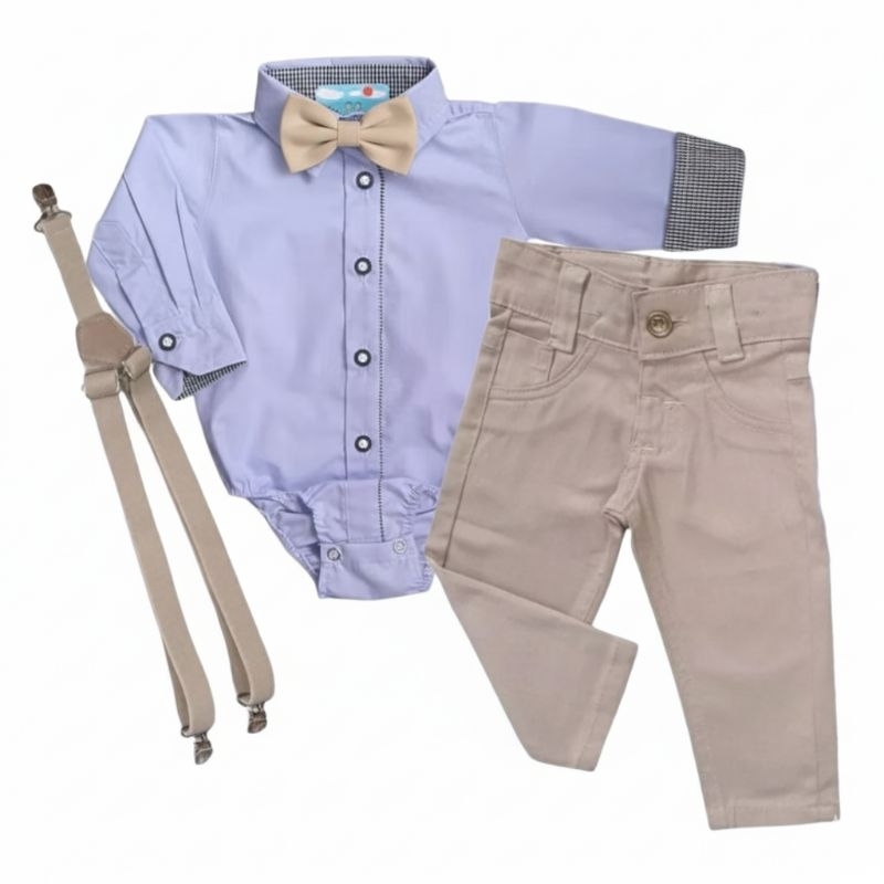 Conjunto Social Bebê Menino Manga Longa e Calça Casamento Festa Evento Fotos
