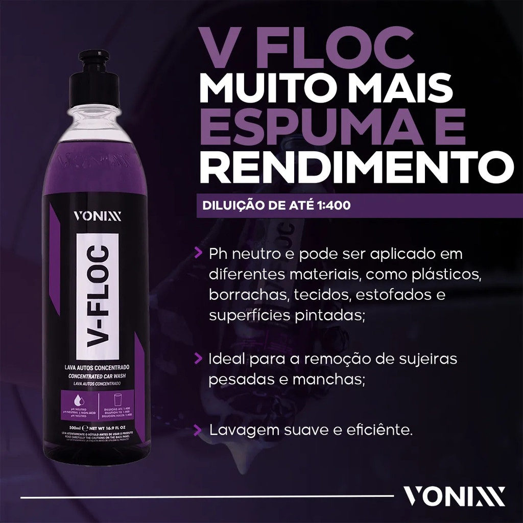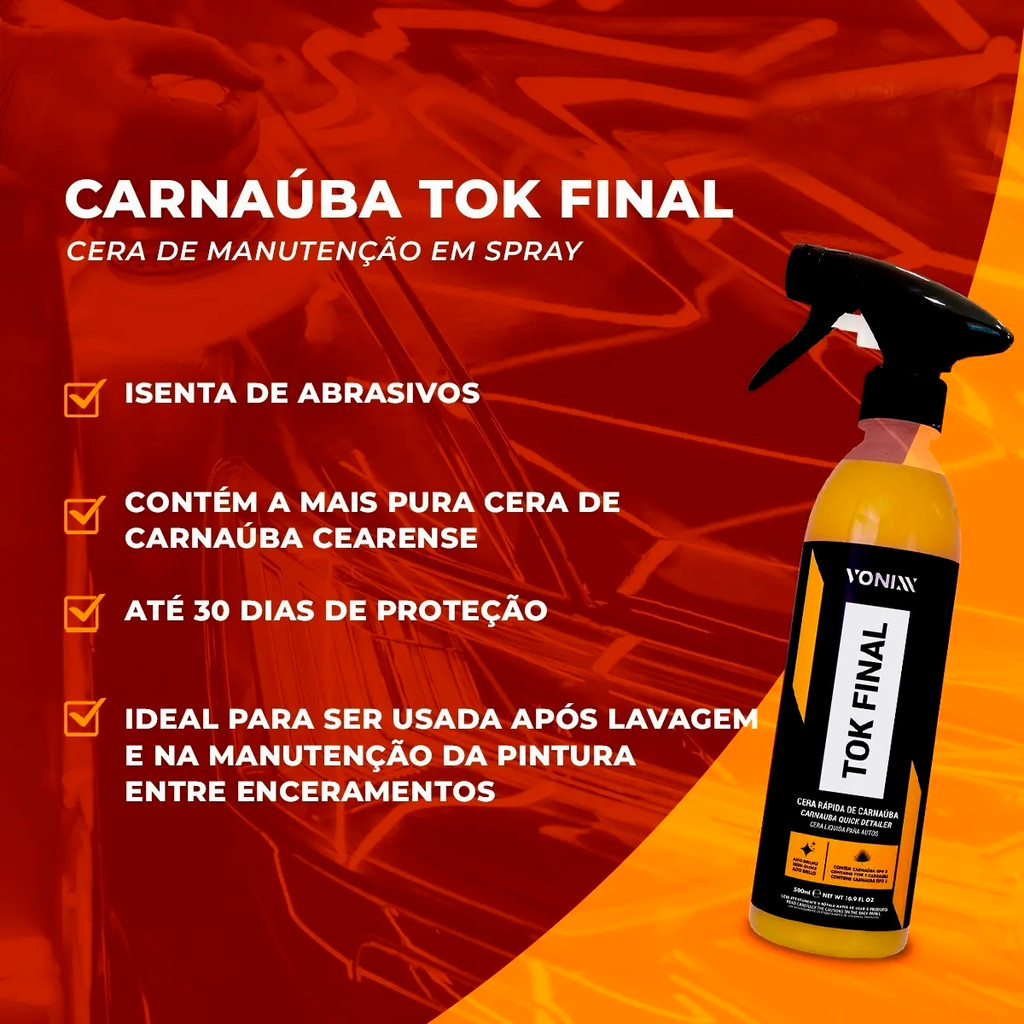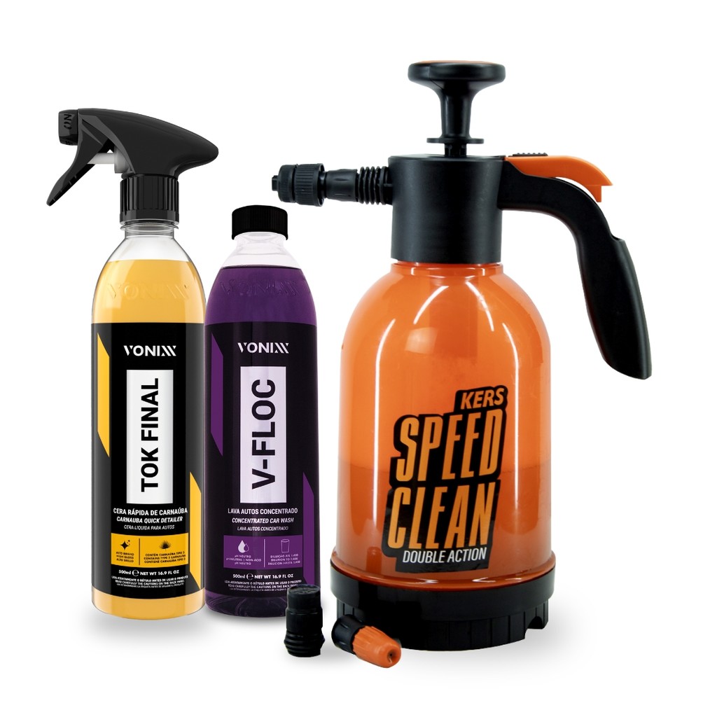 Kit Lavagem e Acabamento Shampoo Vonixx V-Floc E Cera Carnaúba Tok Final 500ml + Pulverizador Foam Speed Clean Kers