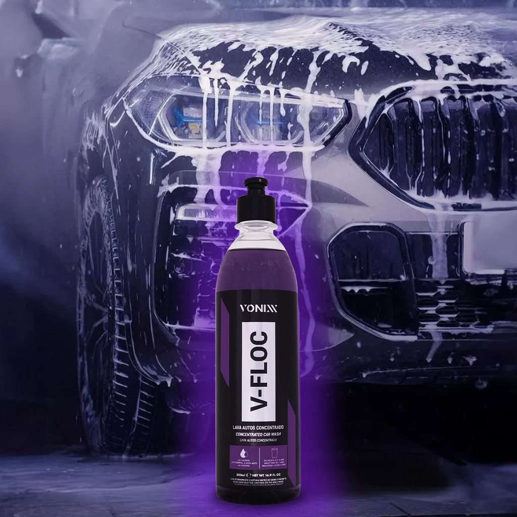 Kit Estética Lavagem Automotiva Vonixx Carro Moto Shampoo V-Floc 500ml e Luva De Microfibra