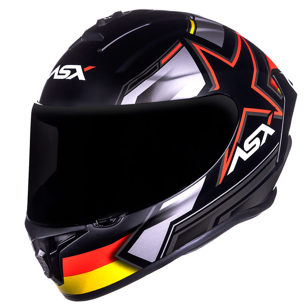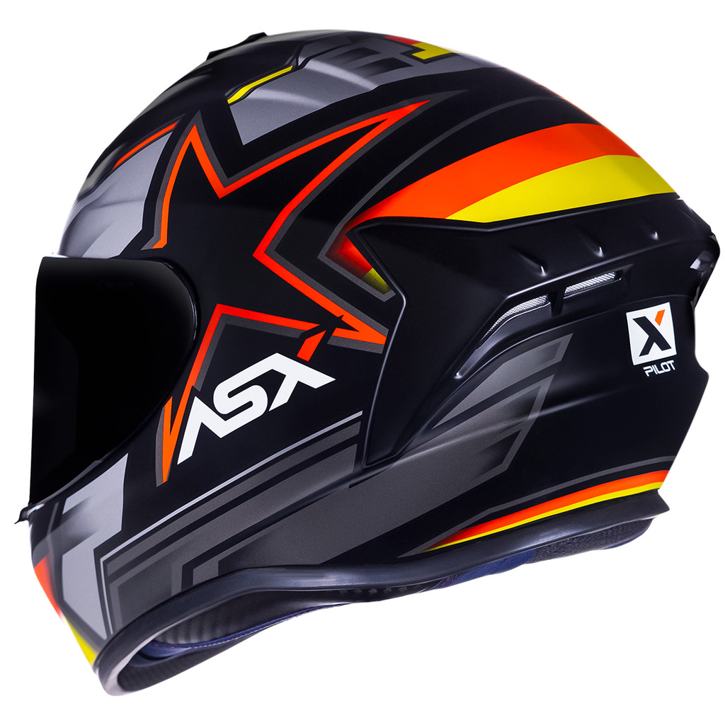 Capacete Asx Draken Pilot Fosco Preto/Vermelho/Amarelo Lançamento Alemanha