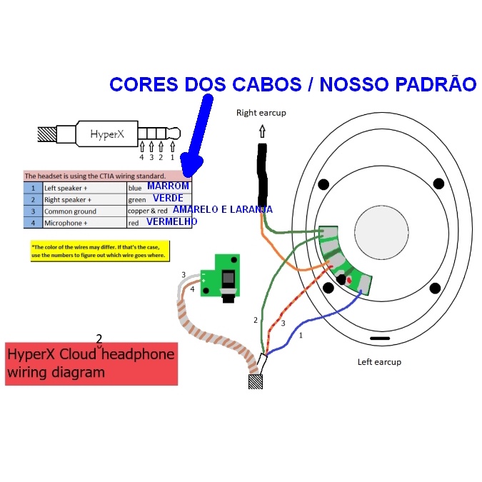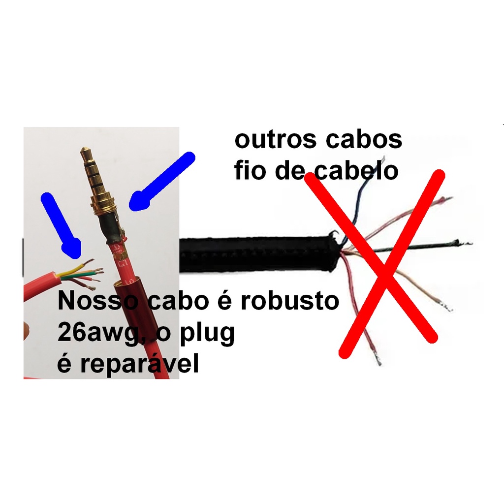 Cabo Reparo 3,5mm P2 P3 Headset Gamer Hyperx Cloud 1,5 metros Robusto e flexivel com 5 Vias