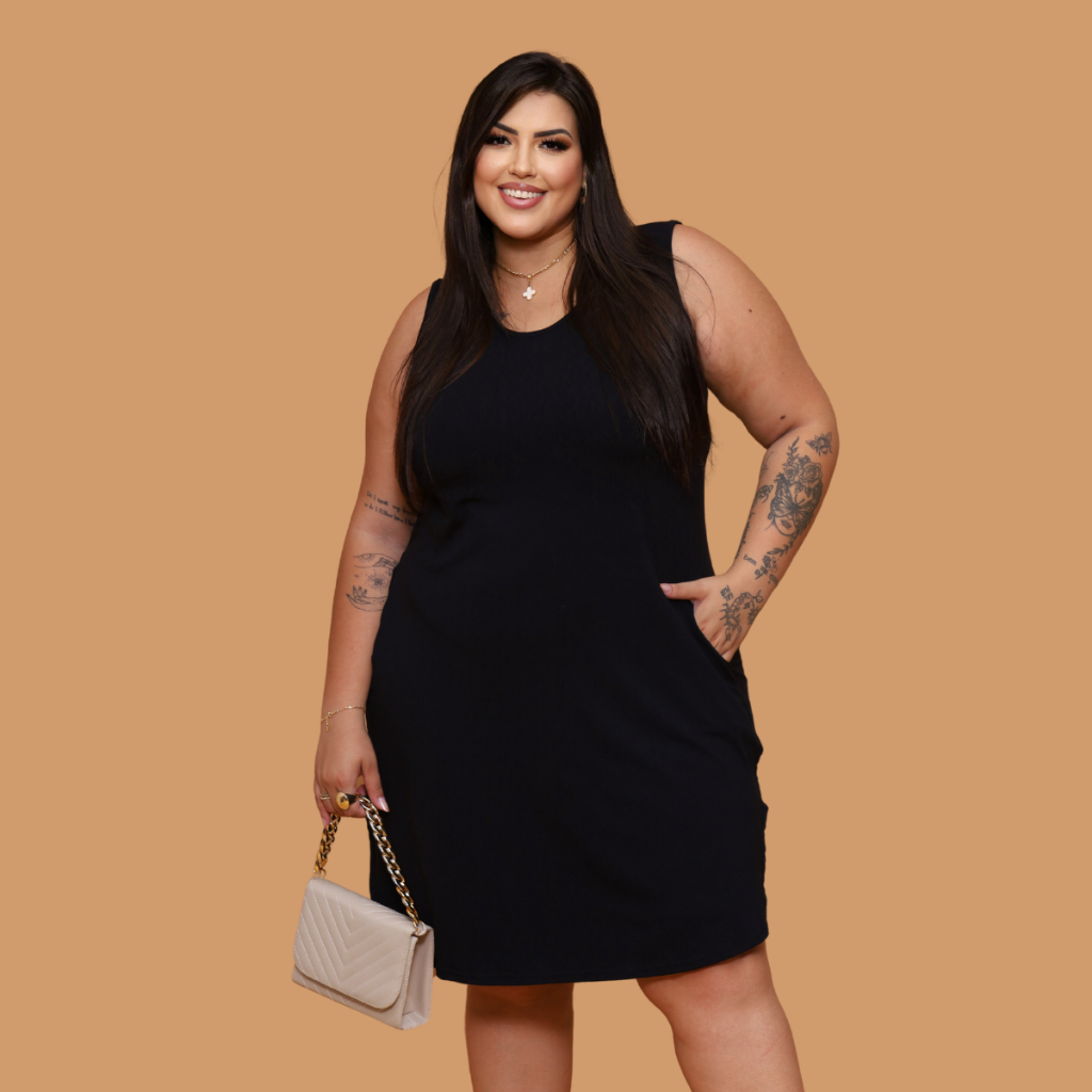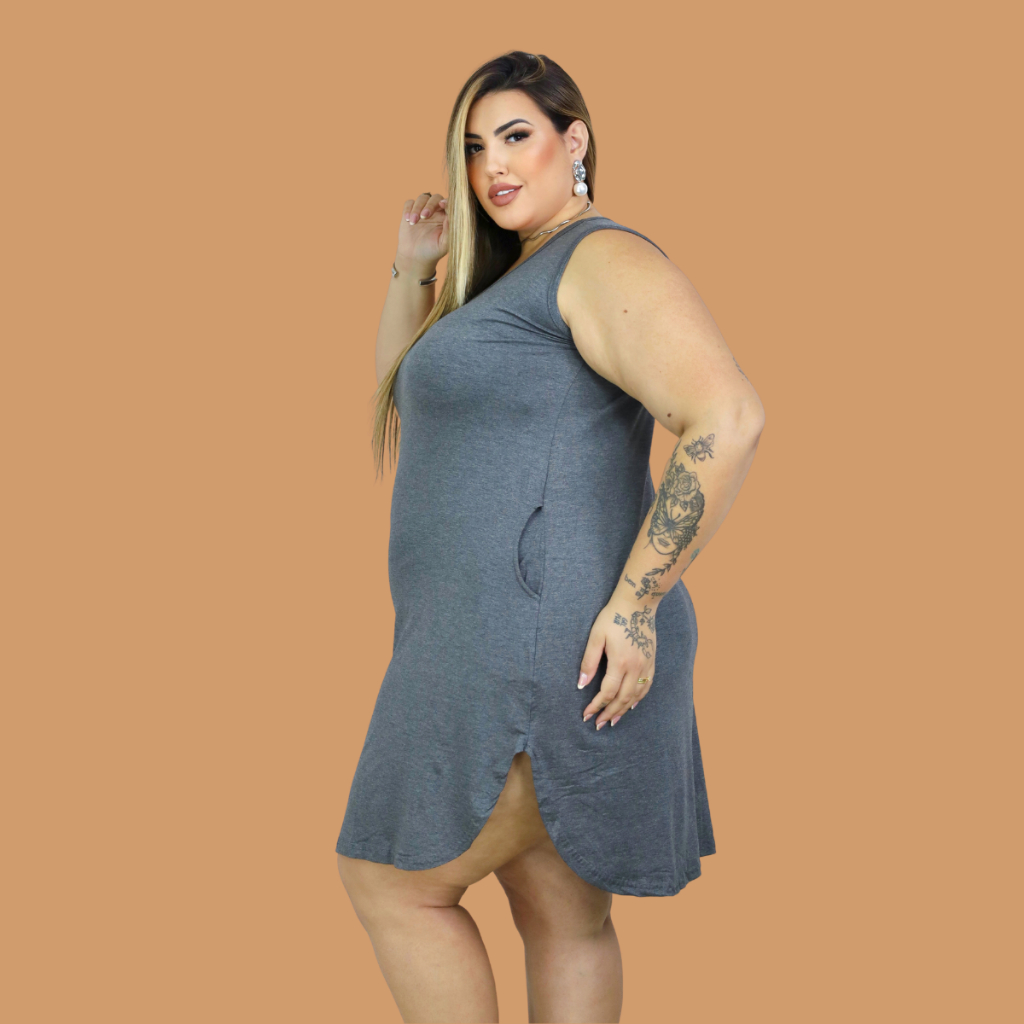 Vestido Regata Plus size Mullet Com Bolso Moda Linda Verão Curve soltinho fresquinho