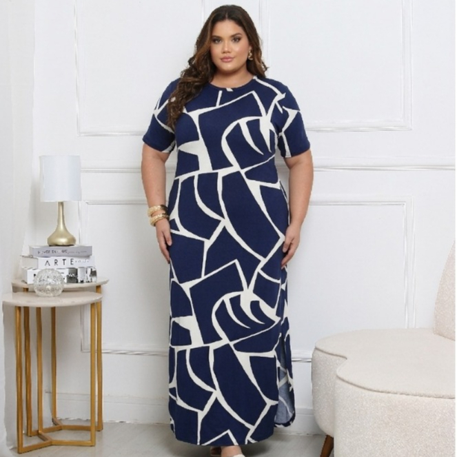 Vestido Longo Curve Curvy Plus size moda evangélica com fenda estampado e liso do 44 ao 58 Casual