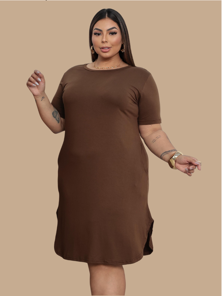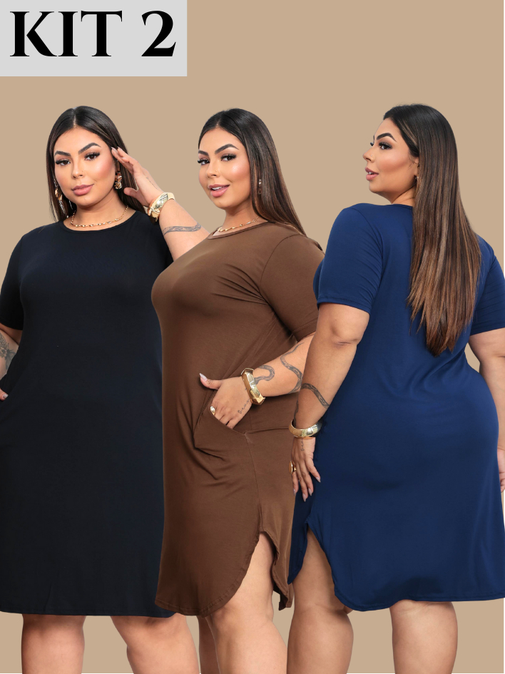 Kit 2 Vestido Plus Size Feminino Casual com Bolso e Fenda Lateral Confortável Elegante para o Dia a Dia