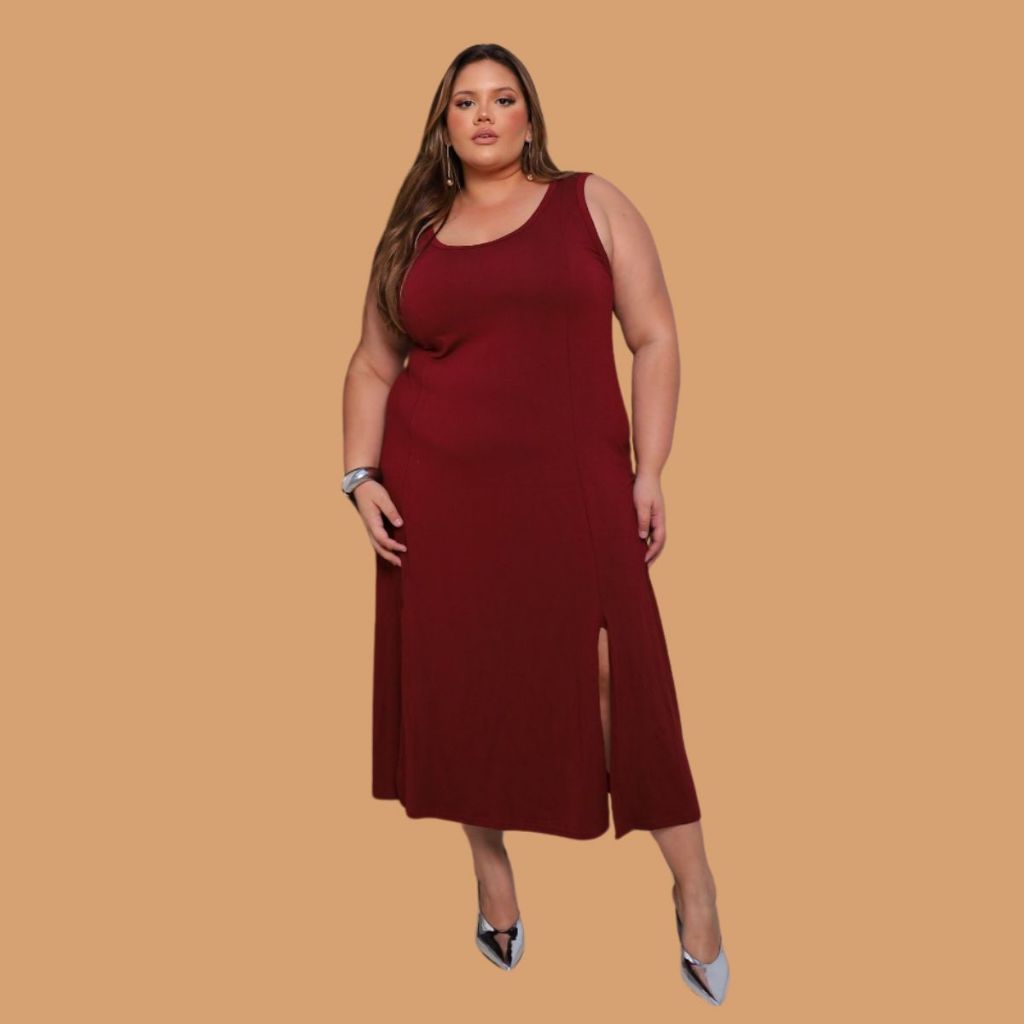 Vestido Midi Regata Plus Size Curve Curvy Com Fenda Tendência