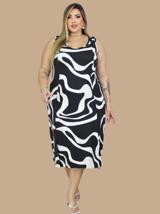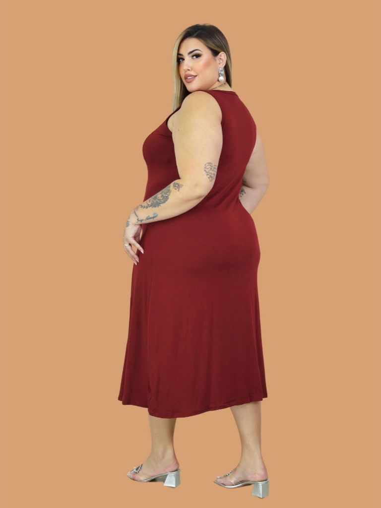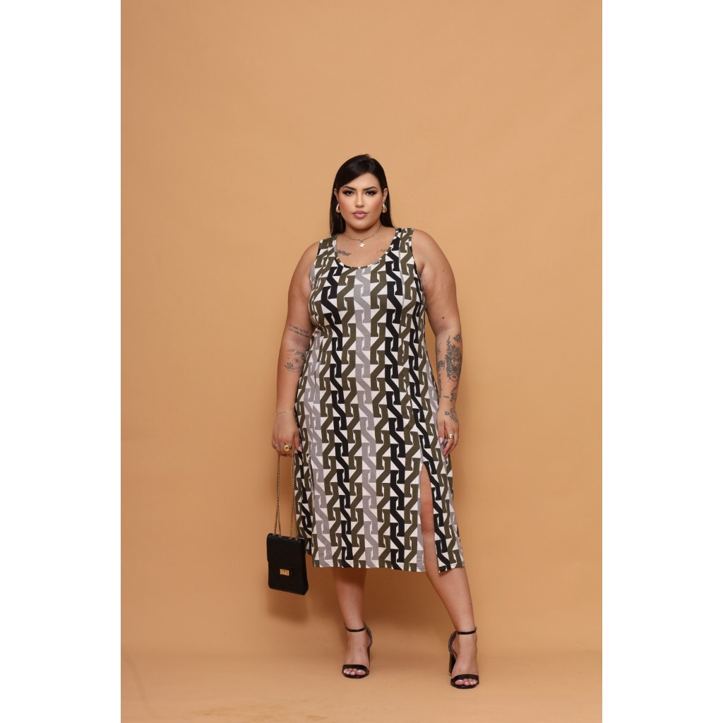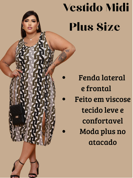 Vestido Feminino Regata Midi Fendas Frontais Plus Size Estiloso mid size verão curve