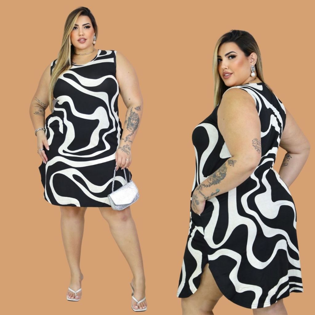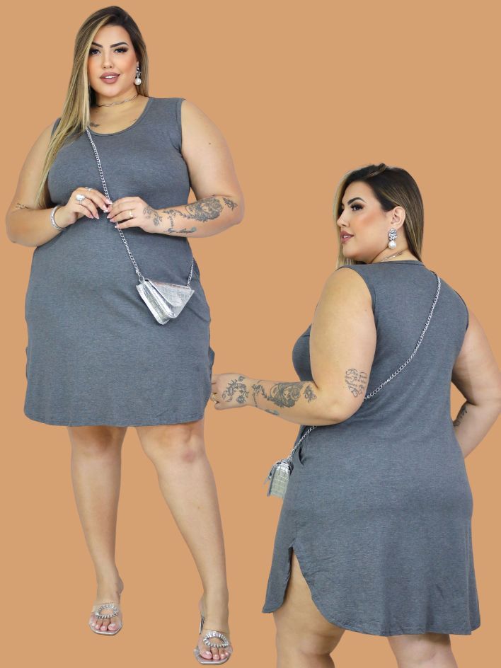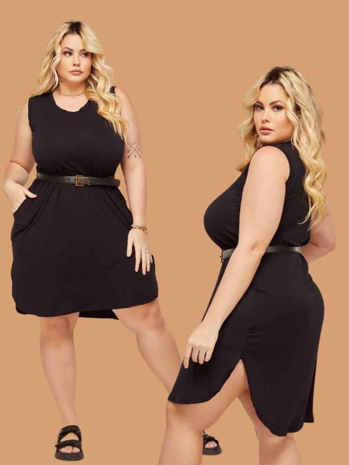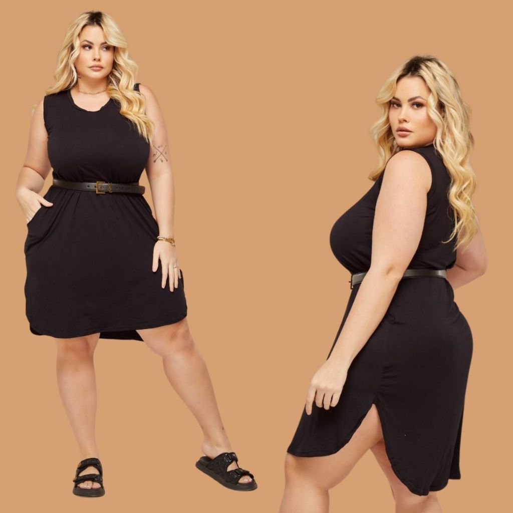 Vestido Regata Mullet Com Bolso Plus Size Moda Curve Curvy Moda Linda Verão