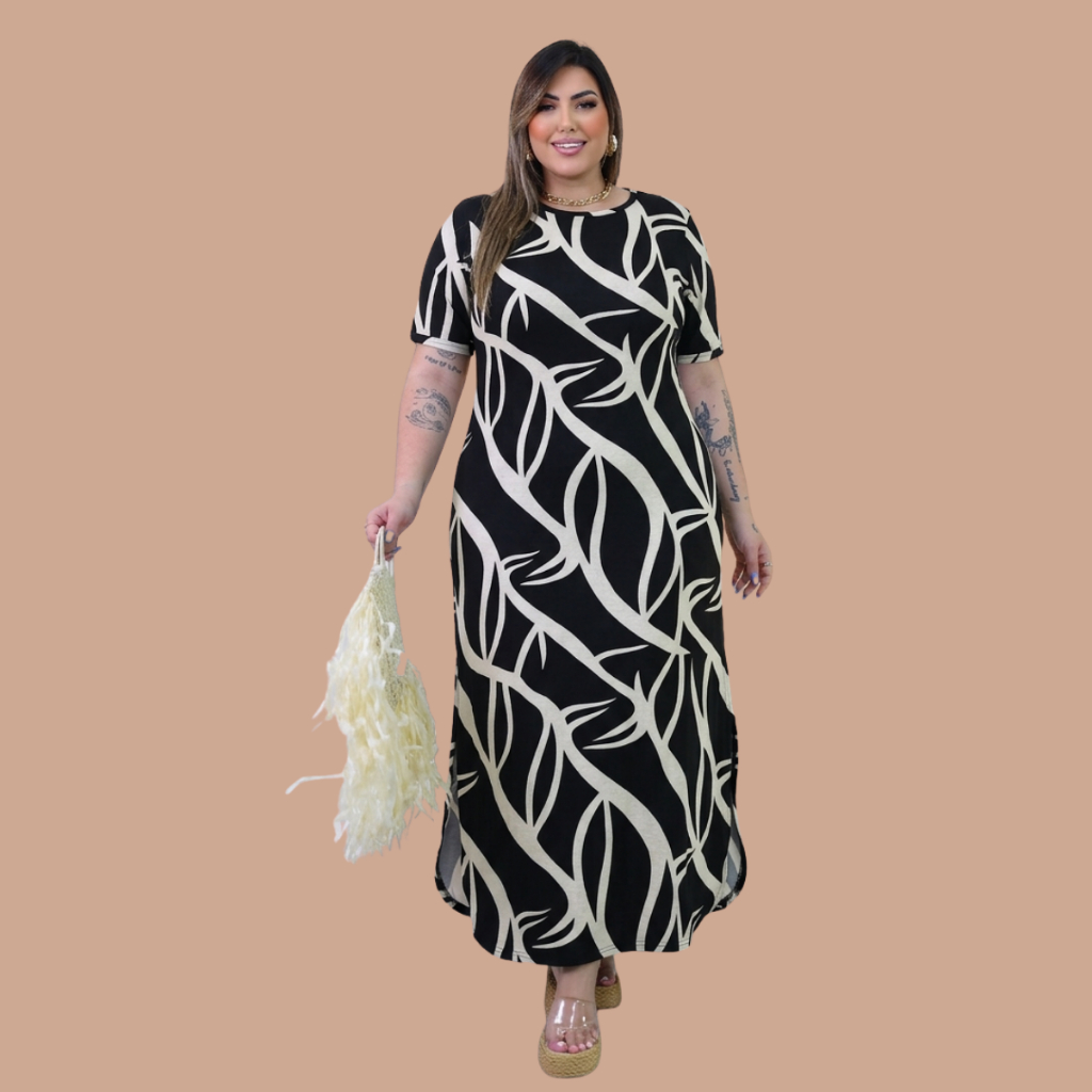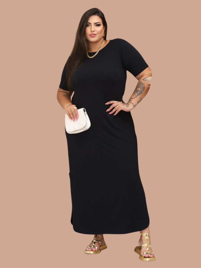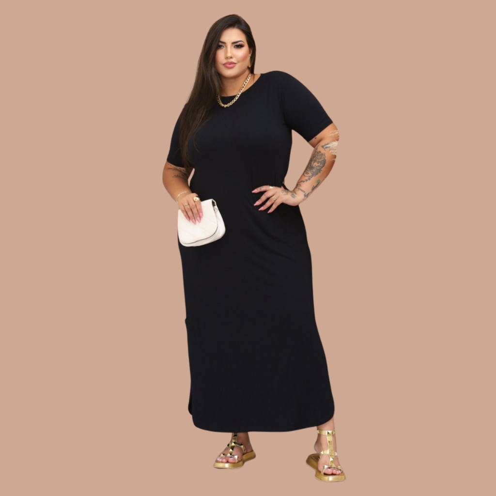 Vestido Feminino Longo Pus size Moda Evangelica Festa Verão Casual Elegante Preto Versátil Cristã