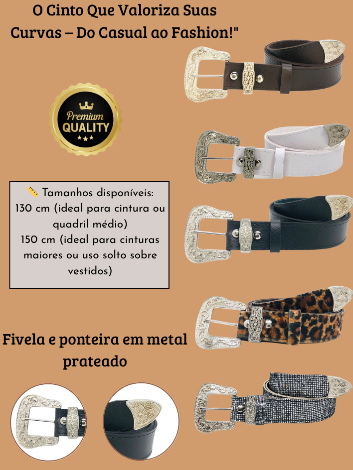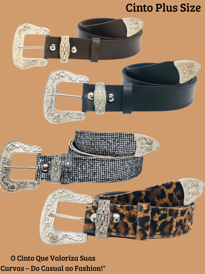 Cinto Feminino Plus Size Country Afivelado Boho Chic Social Elegante Casual Couro Sintético