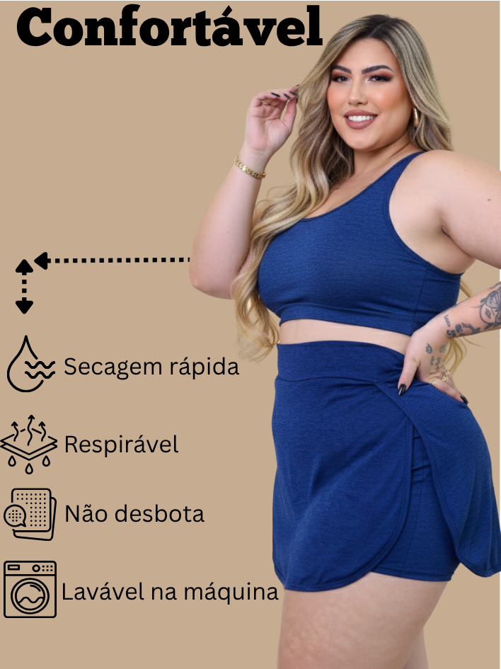 Kit 2 Conjunto Fitness Dry Fit Plus Size 44 Ao 54 Treino Academia moda esportiva Top Short Saia