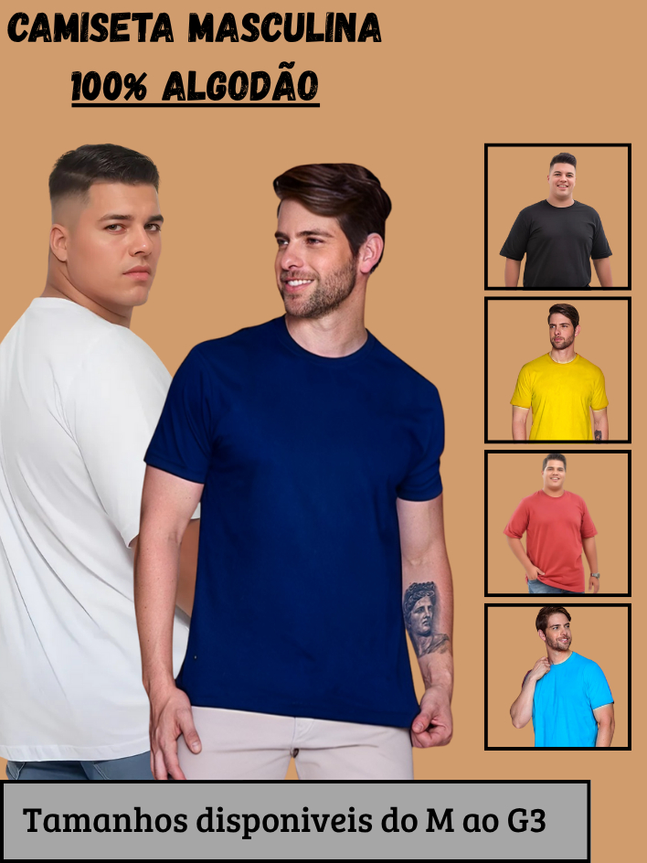 Camiseta básica do M ao G3 PLUS Size Masculina básica 100% Algodão lisa qualidade premium academia