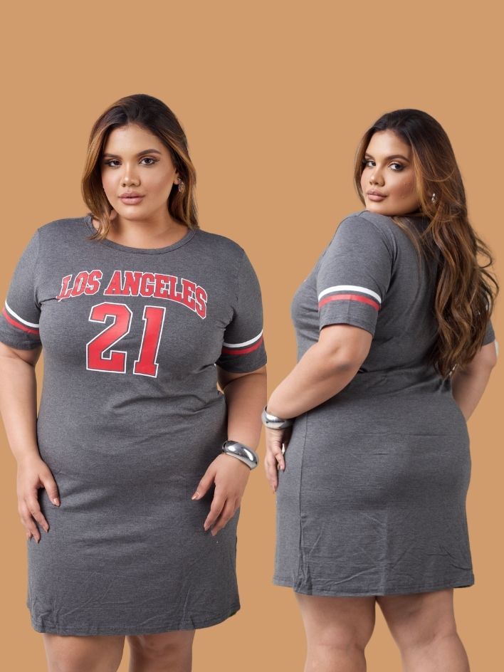 Vestido Curto Estampado Moda Gringa Verão Feminino Plus Size Curve Curvy Camisão Camisetão