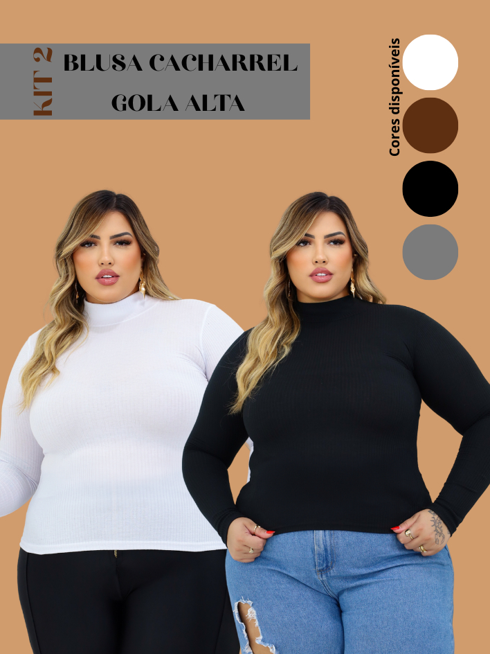 Kit 2 Blusa De Frio Feminina Cacharrel Gola Alta Plus Size Canelada Premium Segunda Pele Manga Longa
