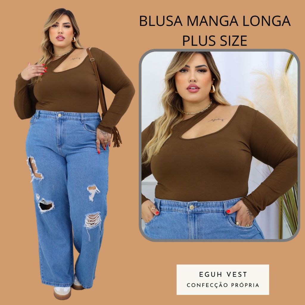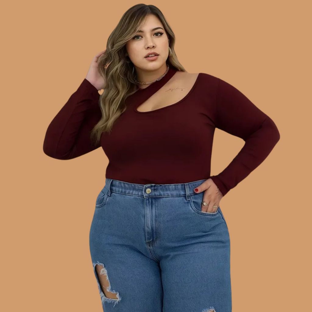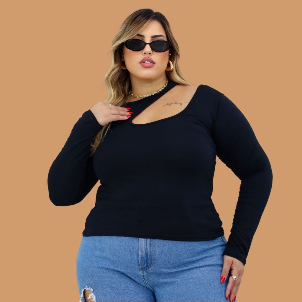 Blusa Manga Longa Feminina Chocker meia Estação Frio Plus Size
