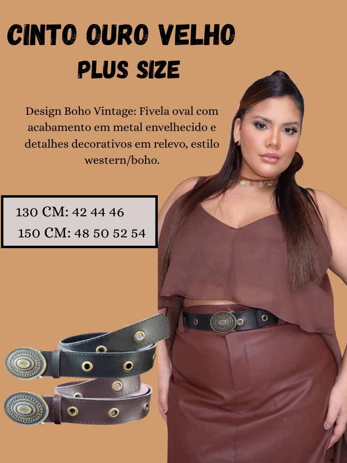 Cinto Ouro Velho Plus Size Festa Elegante Chic Country