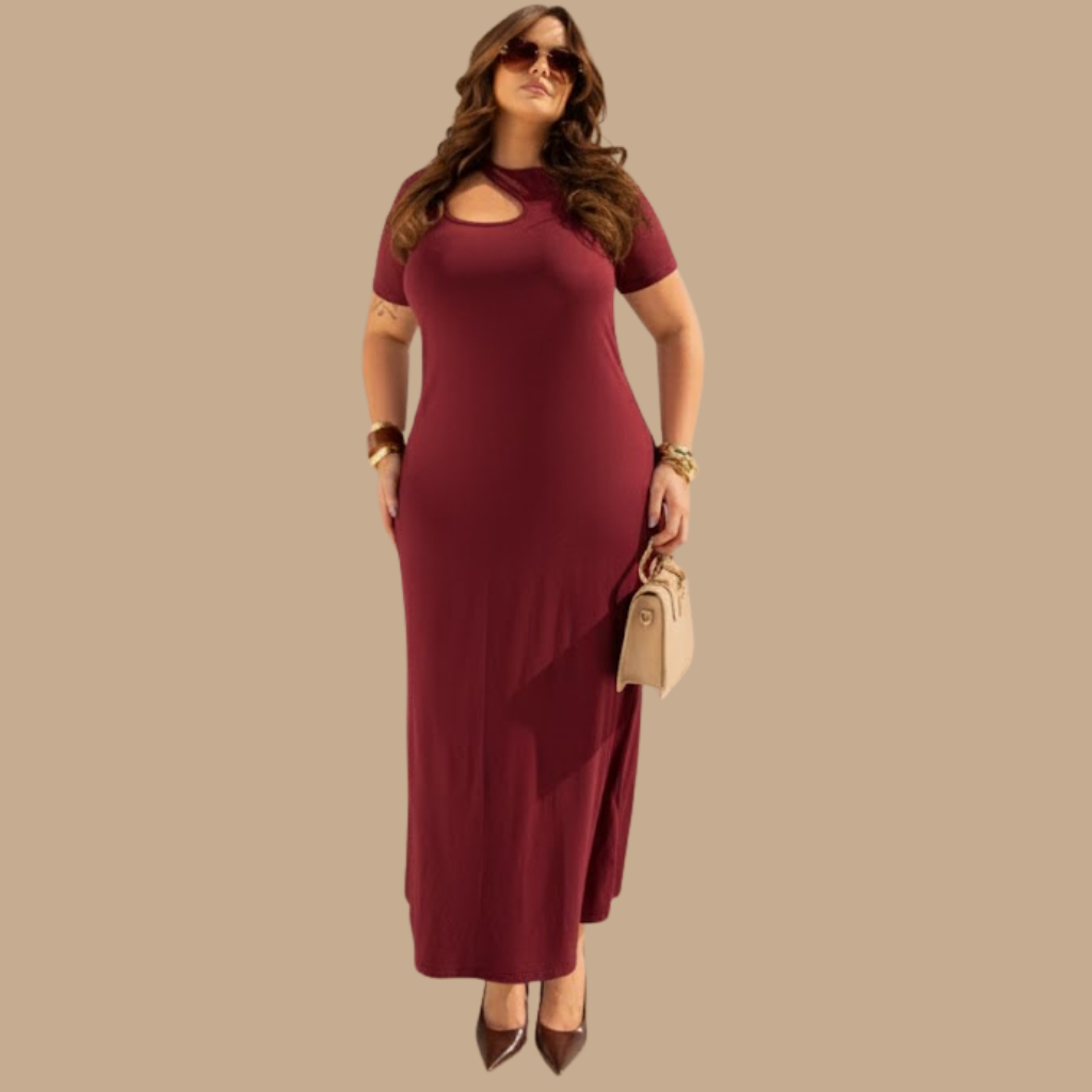 Vestido Longo Plus Size Decotado Vestido Liso Madrinha Casamento 44 ao 56 Elegante Curve Comfy