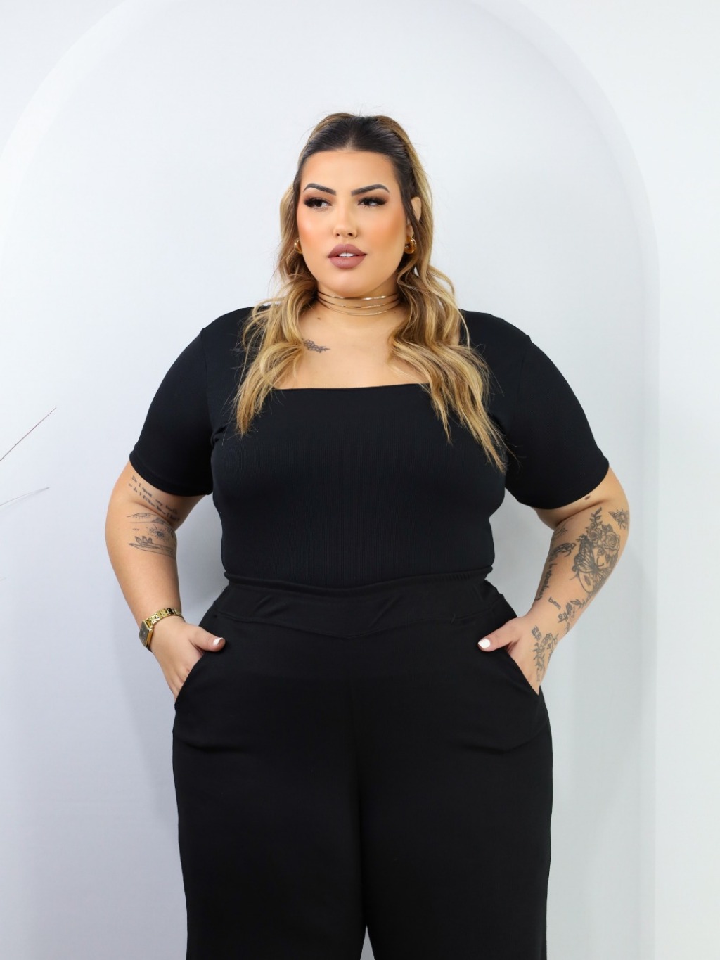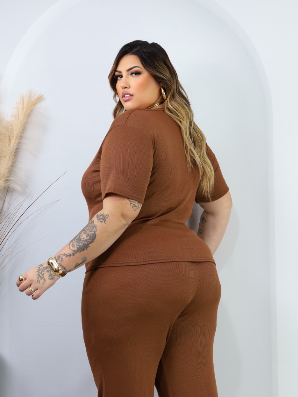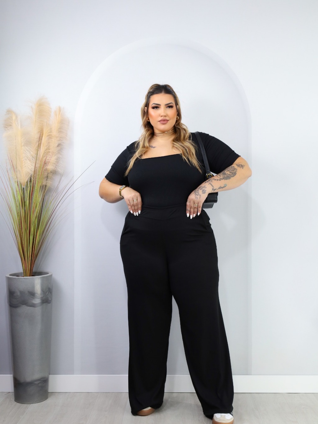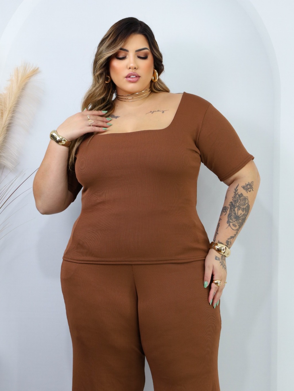 Kit 2 Conjuntos Plus Size Pantalona Com Bolso E Blusa Gola Quadrada Ribana Premium confortável curve