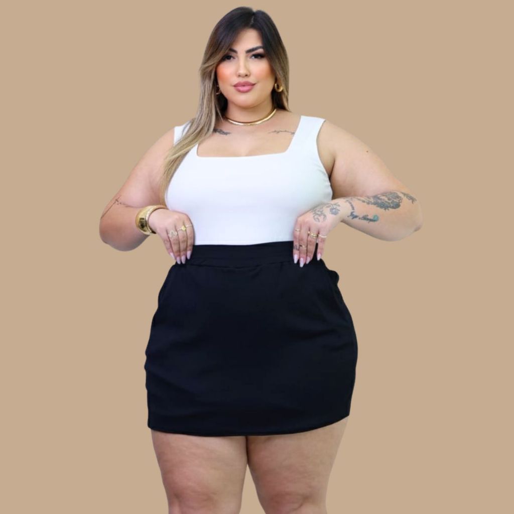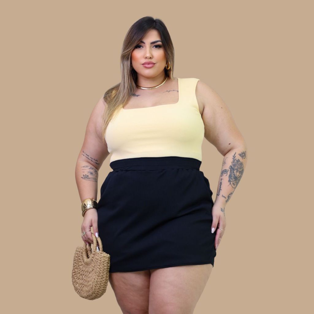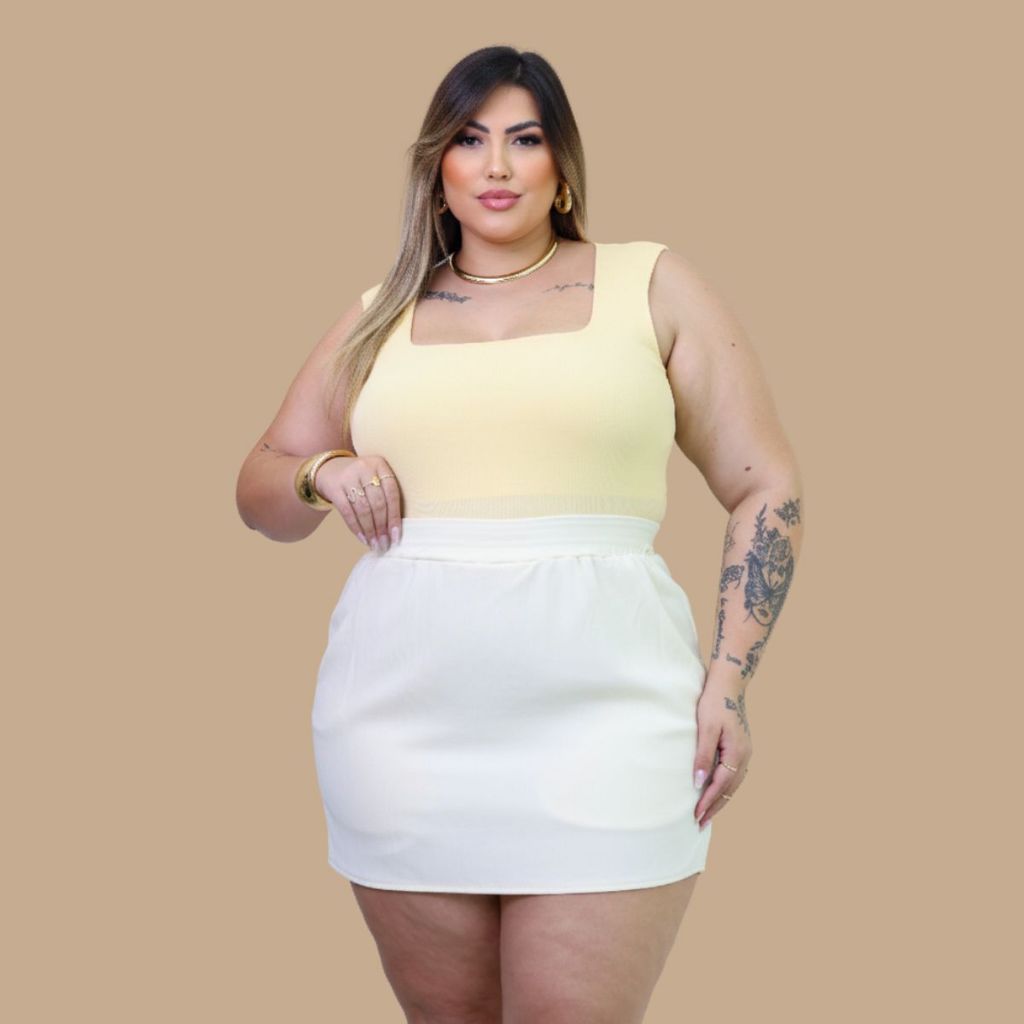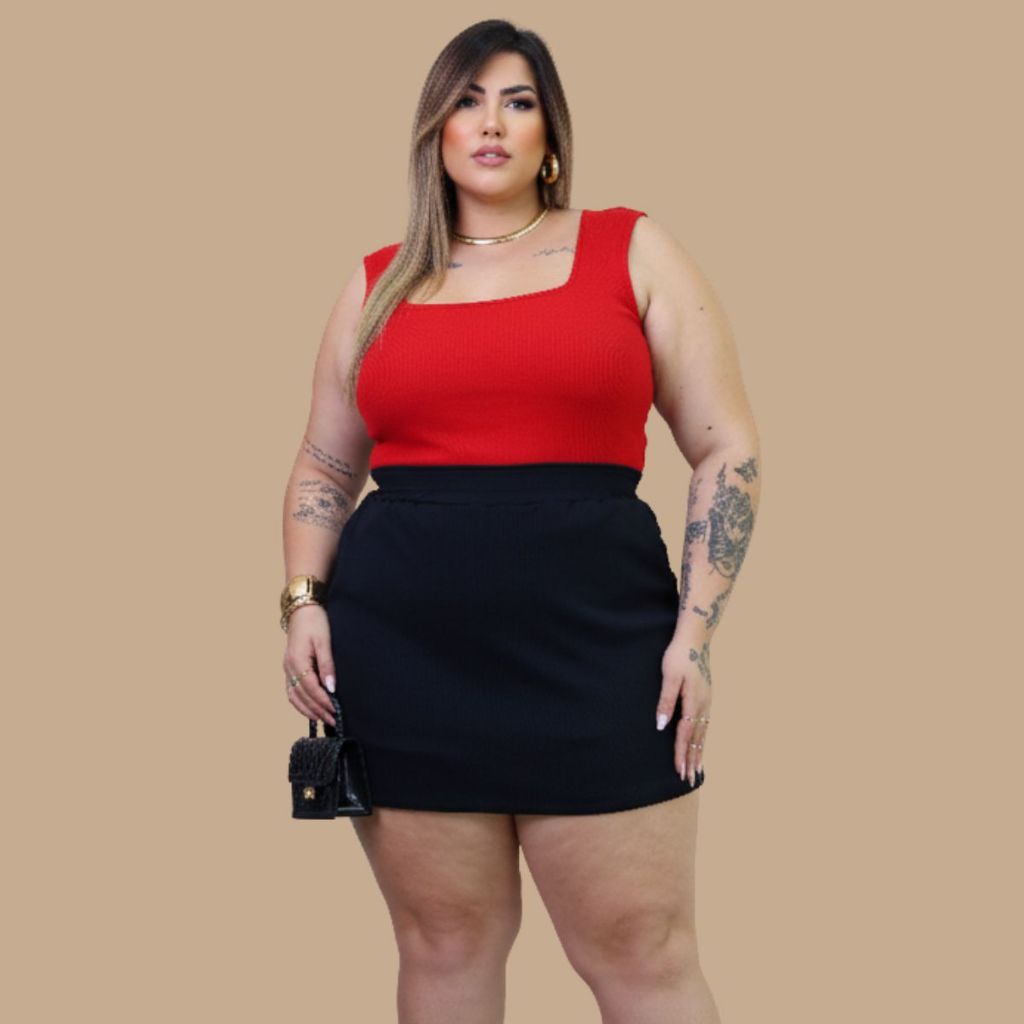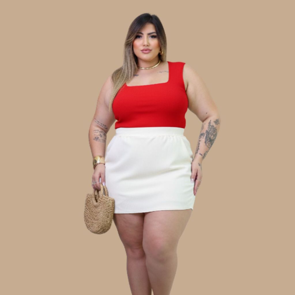 Conjunto Regata e Short Ribana Plus Size Premium Tendência Verão G1 G2 G3 Feminino Tendência Curve Comfy