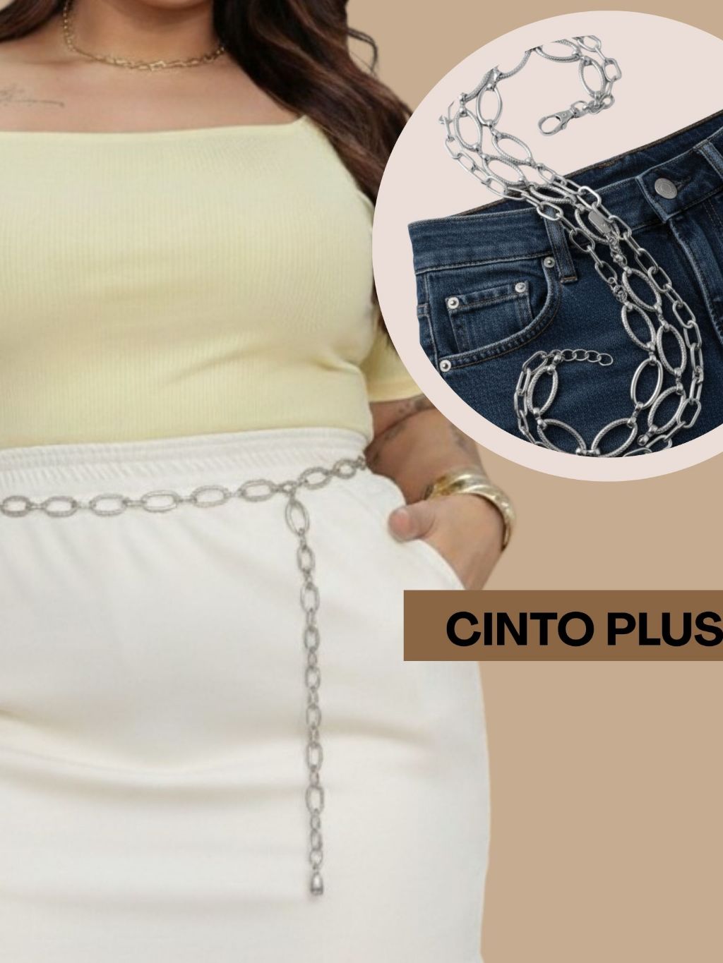 Cinto Plus Size Corrente Elegante Vazado Ajustável 130 e 150cm Dourado Prateado Glow Size