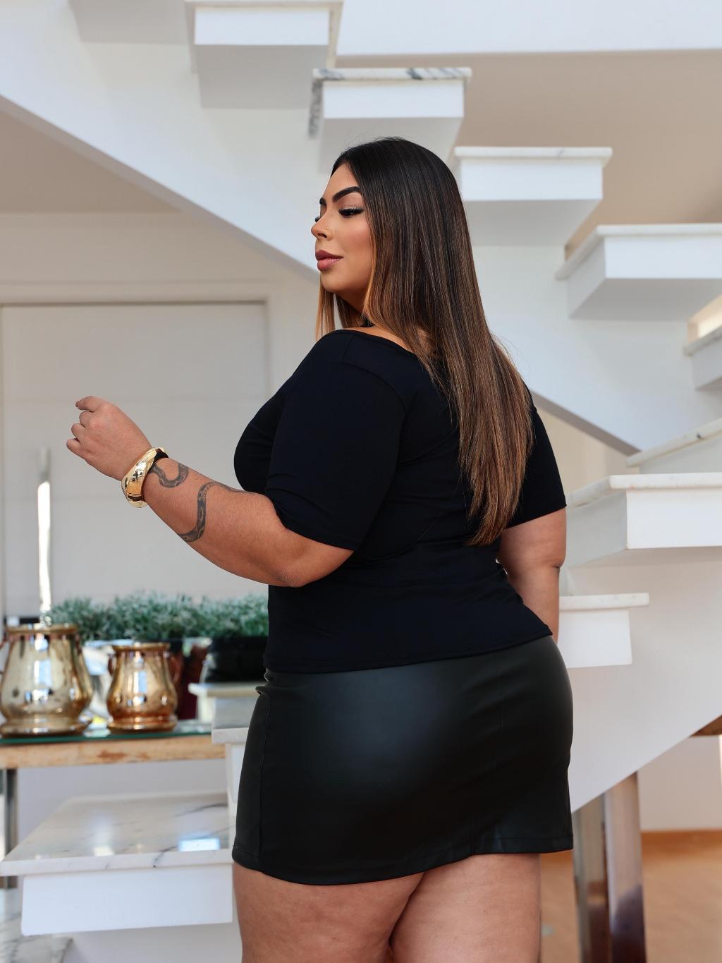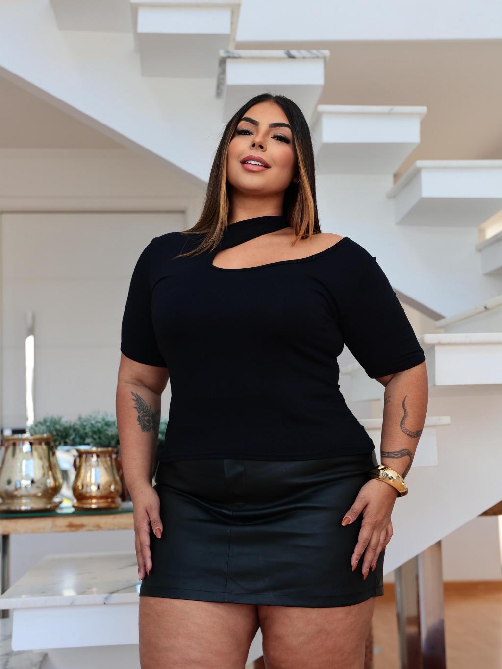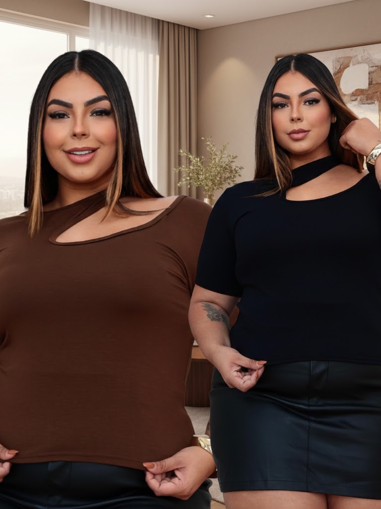 Kit 2 Blusas Femininas Chocker Manga Curta Plus Size Malha Confortável Tamanho G1