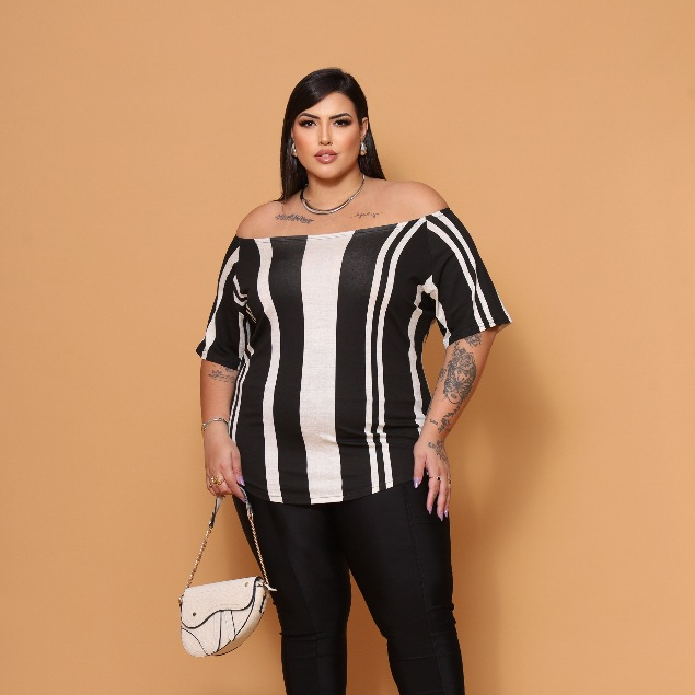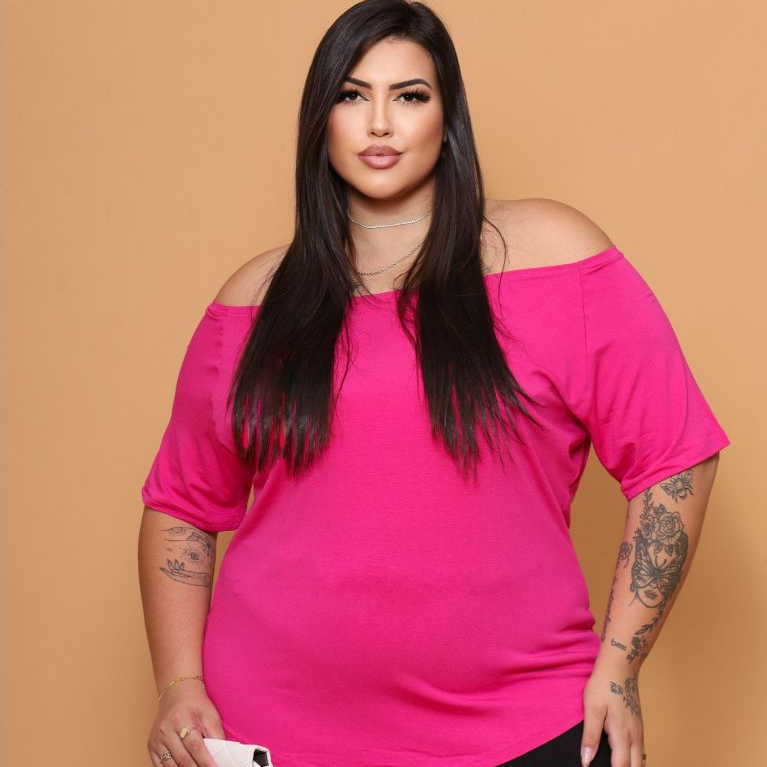 Blusa T-shirt Plus size Curve Curvy ombro a ombro academia ciganinha linda do G1 AO G3