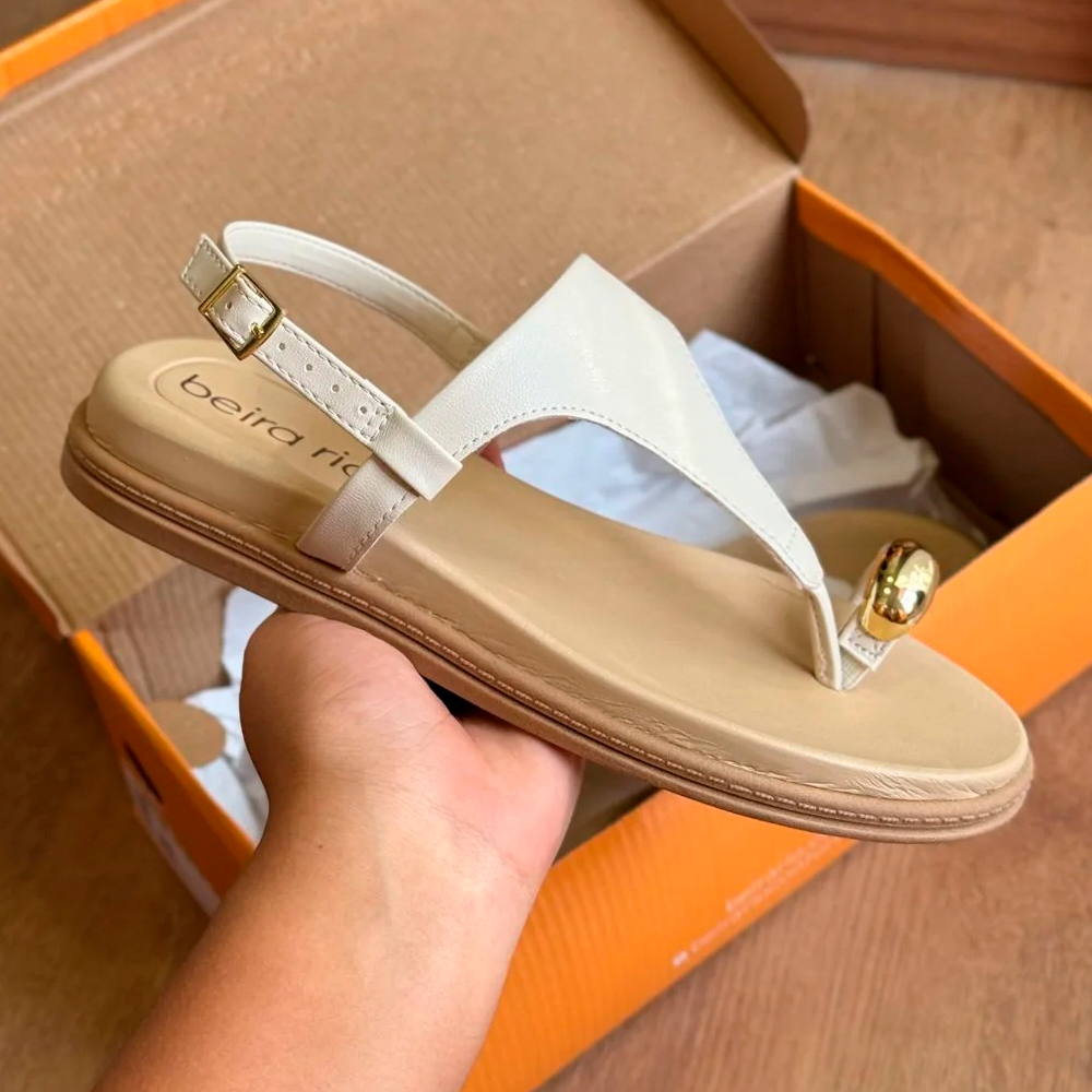 Sandalia de Dedo Feminina Beira Rio Papete Metálico Estilosa Fivela Confortável Original