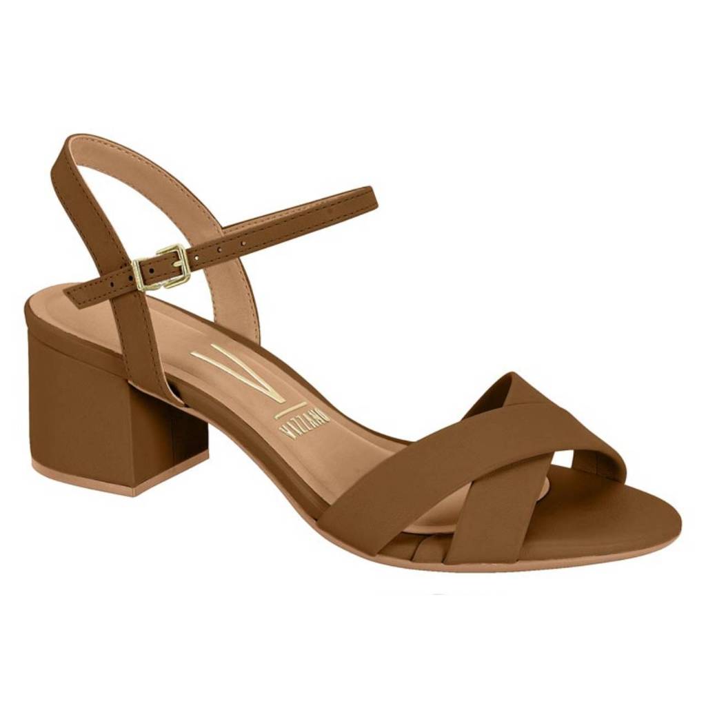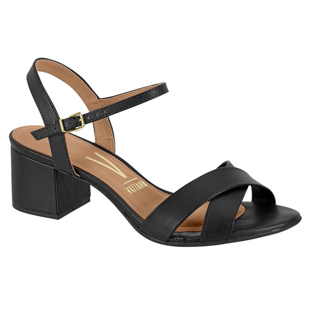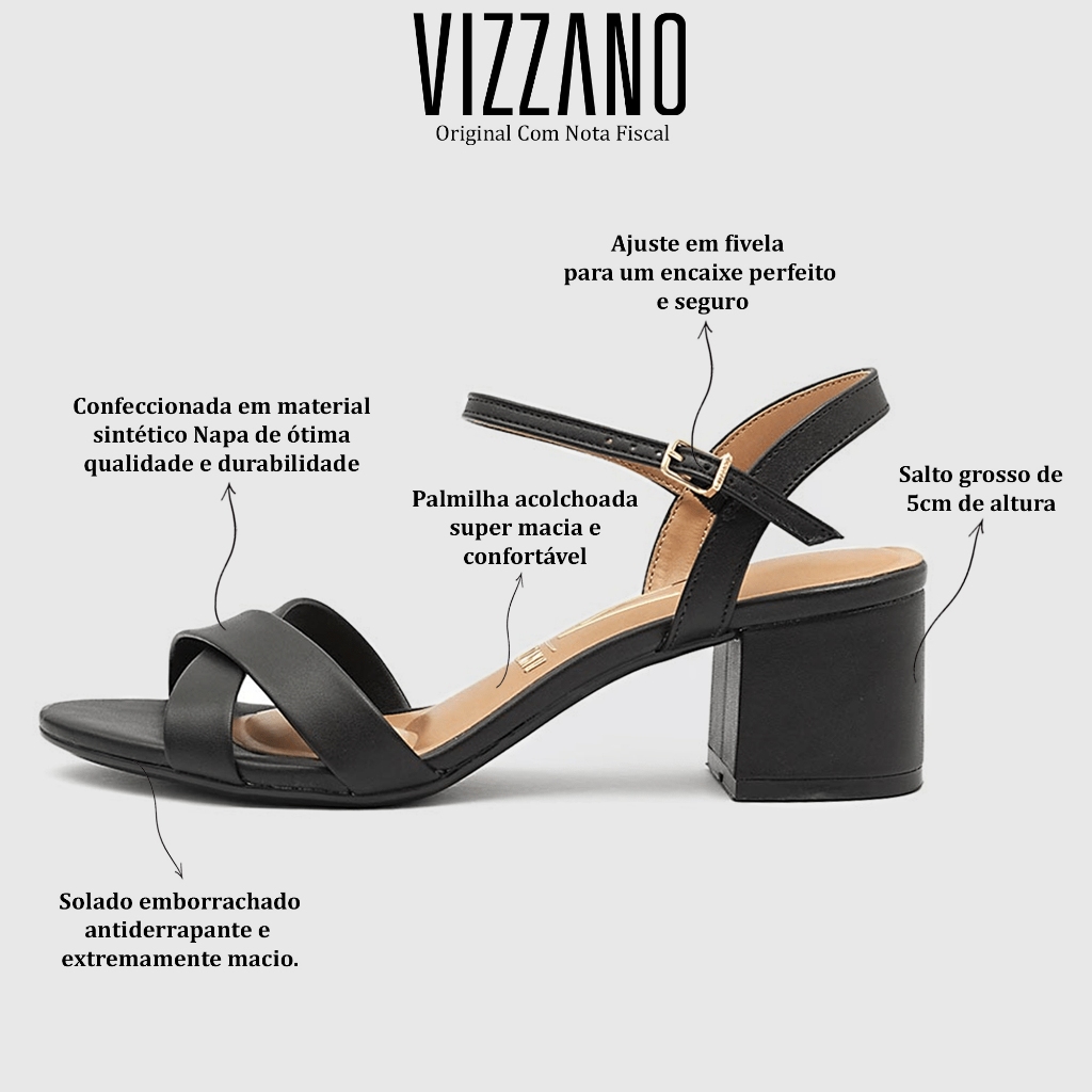 Sandália Feminina Vizzano Salto Médio Grosso Bloco 5cm Tira Preto Confortável Original