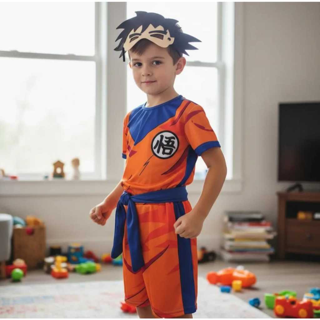 Fantasia Infantil Menino Goku Com Máscara Eva Tecido