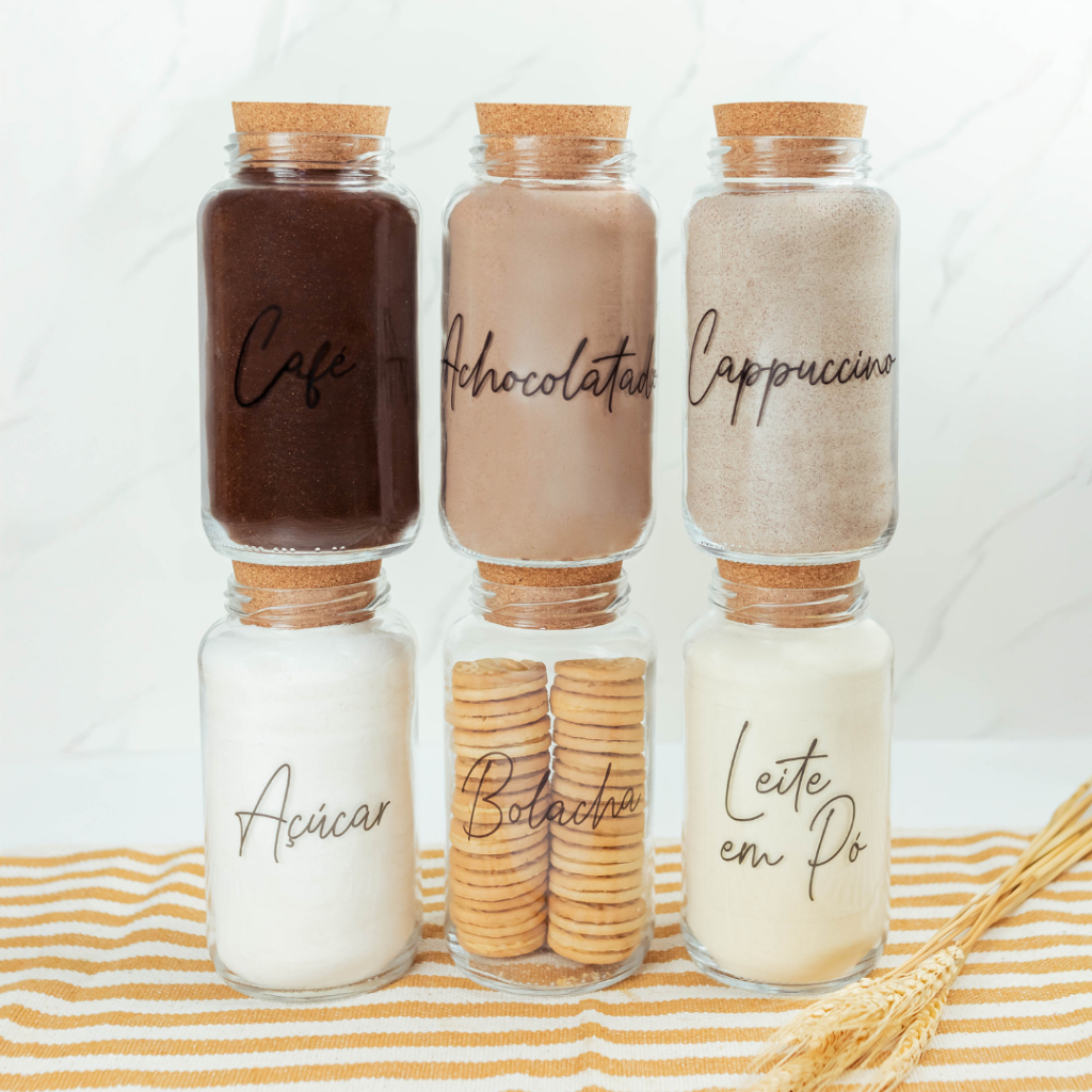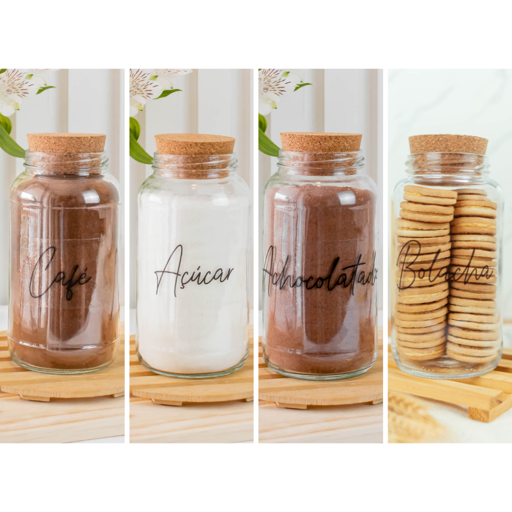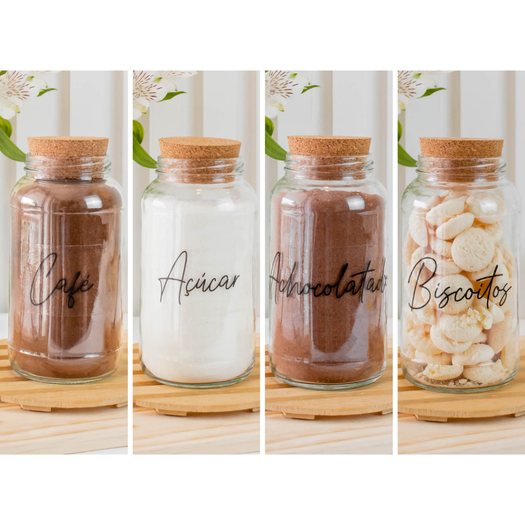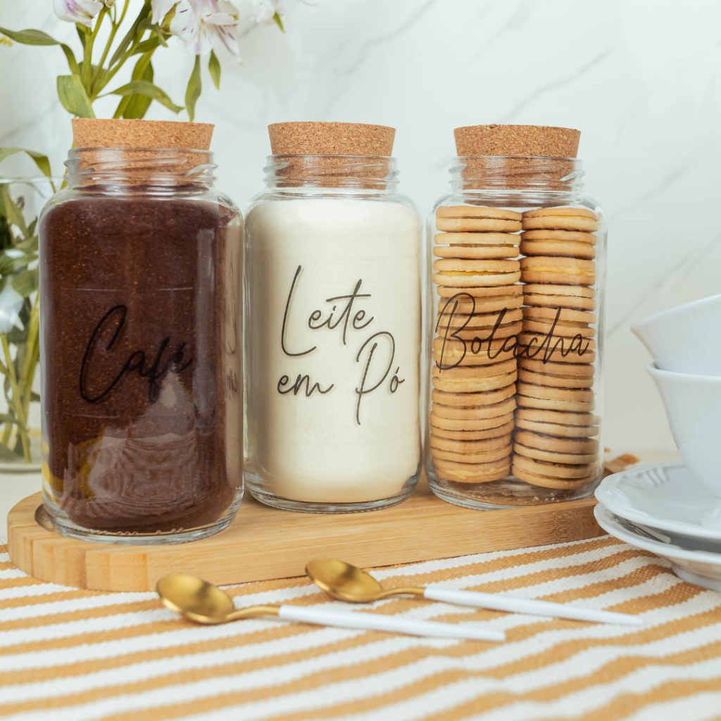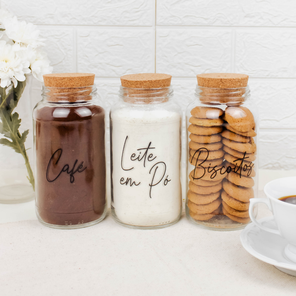 Cantinho do Café 810ml | ESCOLHA SEU KIT | Potes de Vidro | Tampa de Cortiça com KITS e UNIDADES