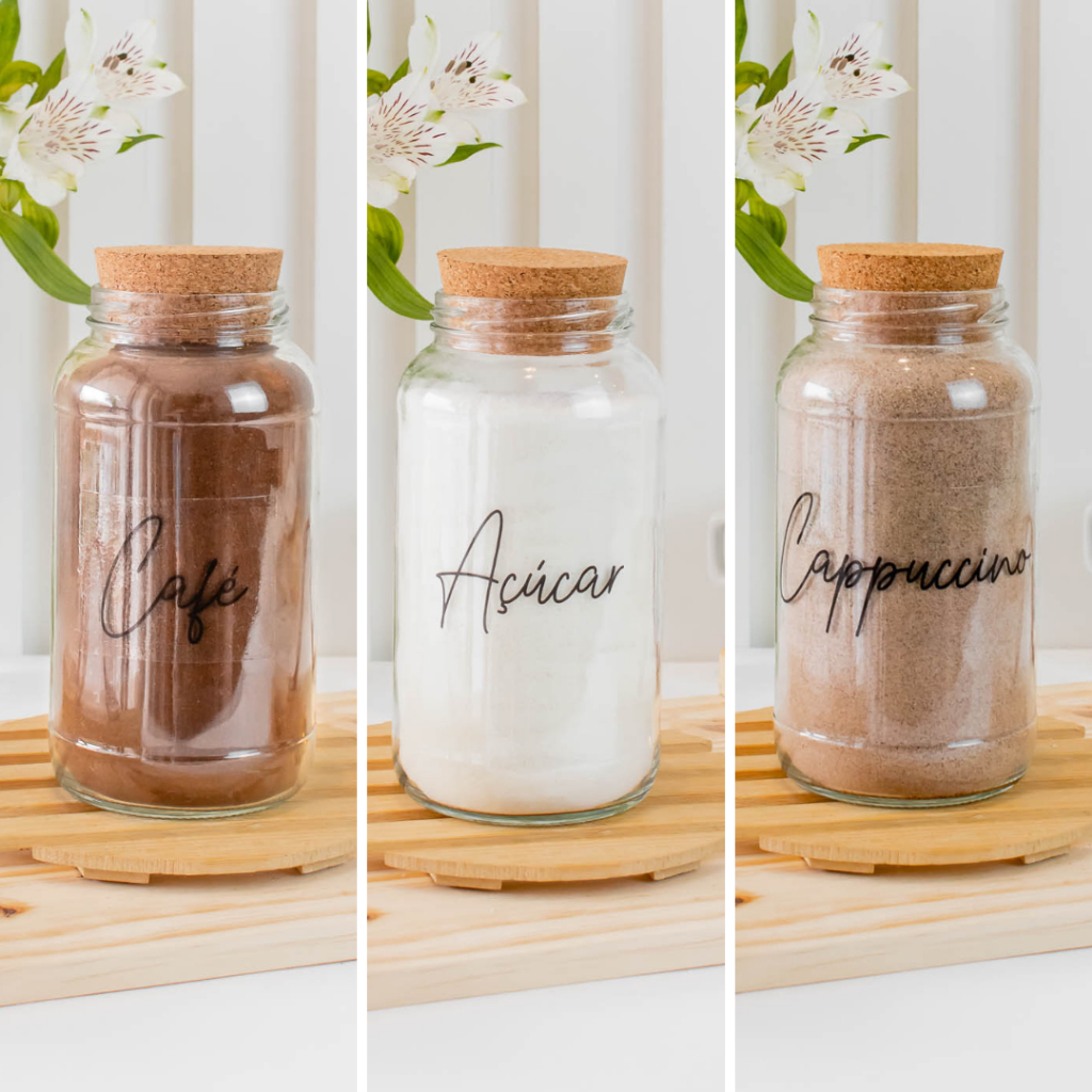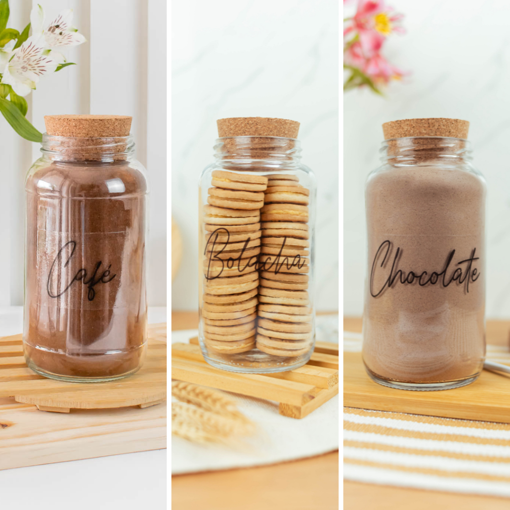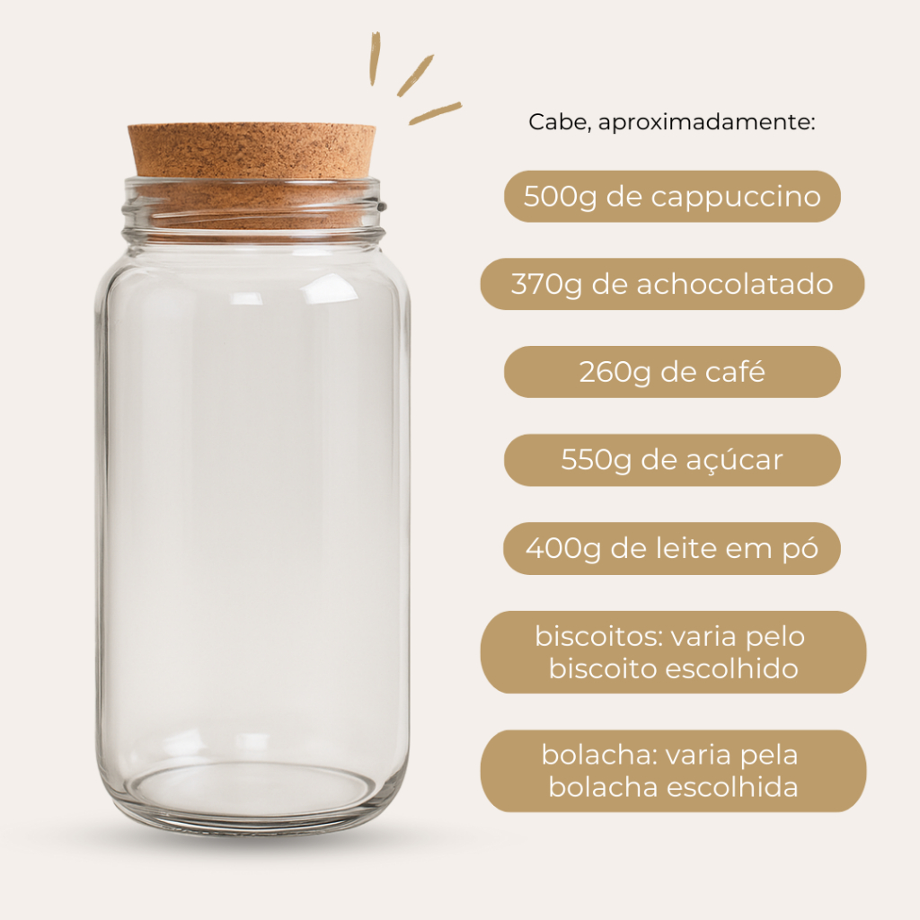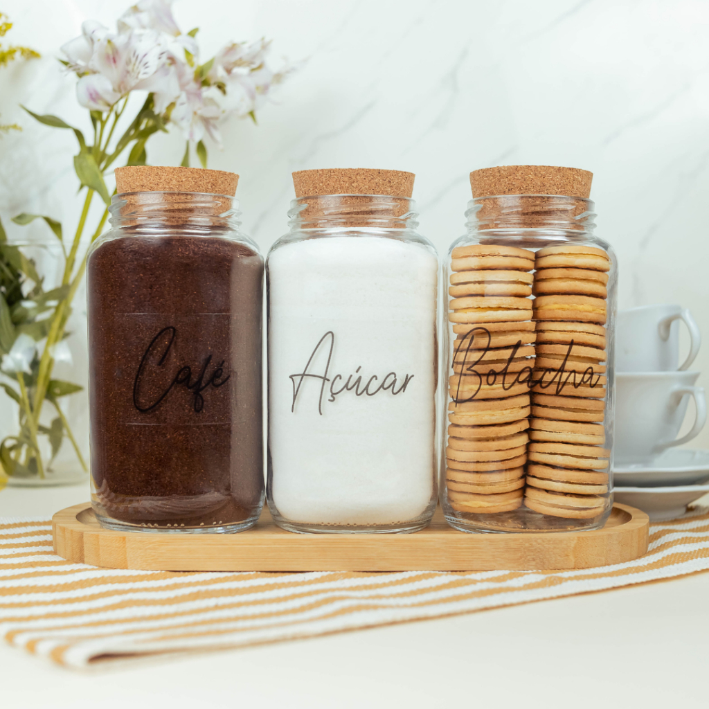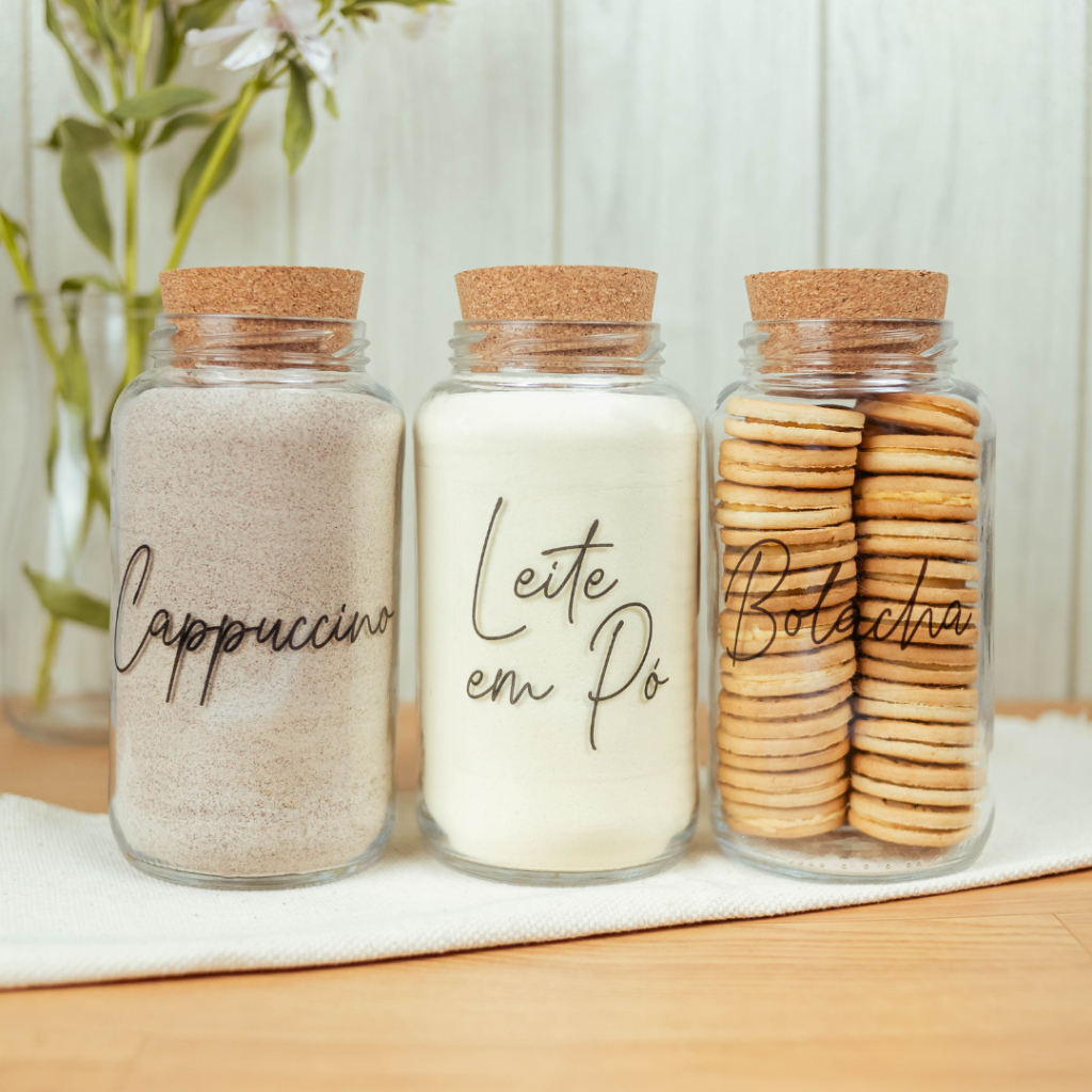 Cantinho do Café 810ml | ESCOLHA SEU KIT | Potes de Vidro | Tampa de Cortiça com KITS e UNIDADES