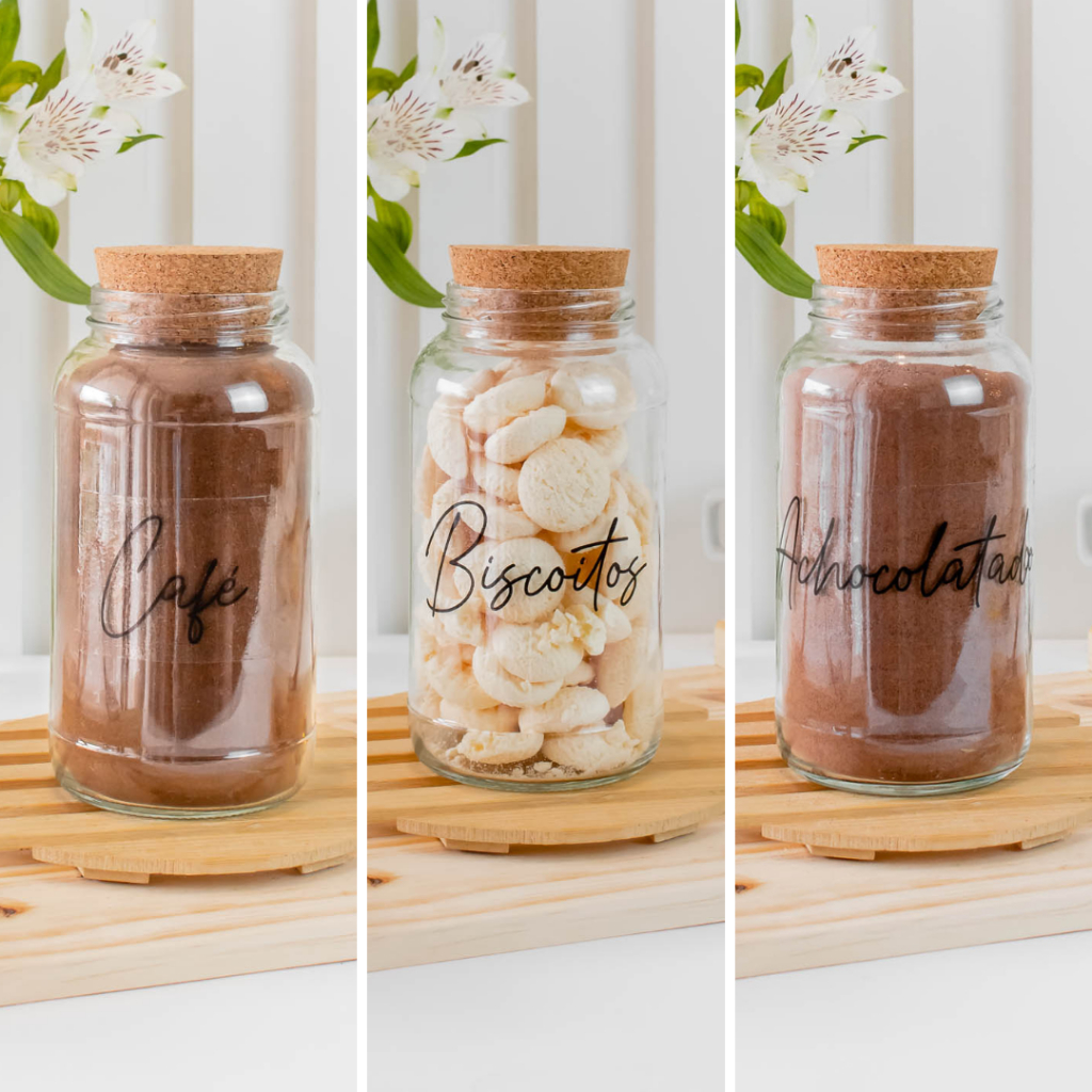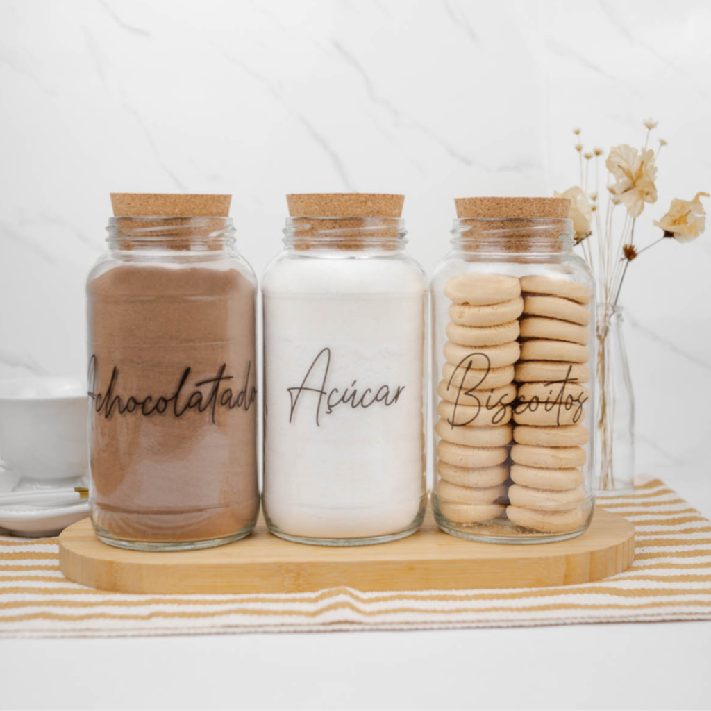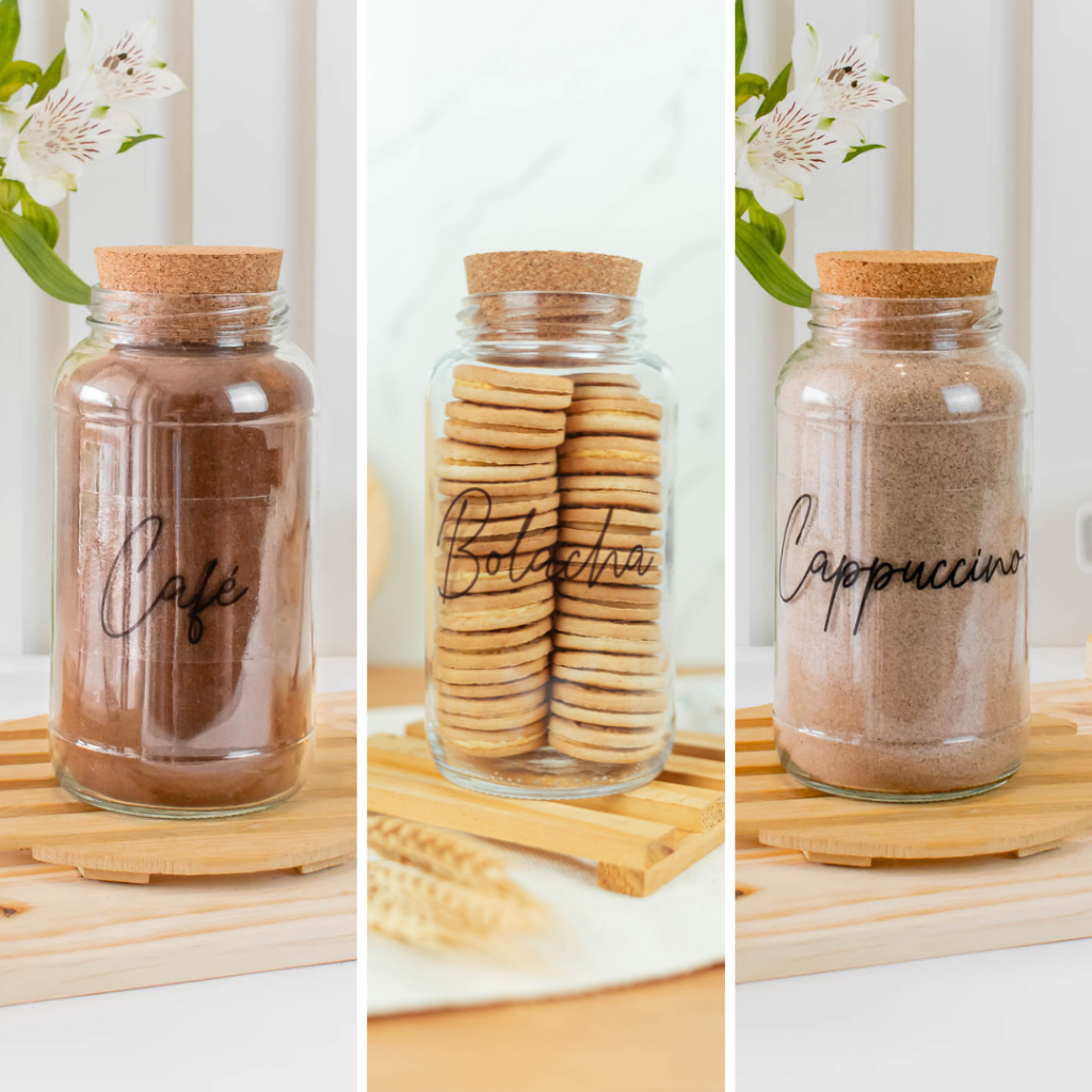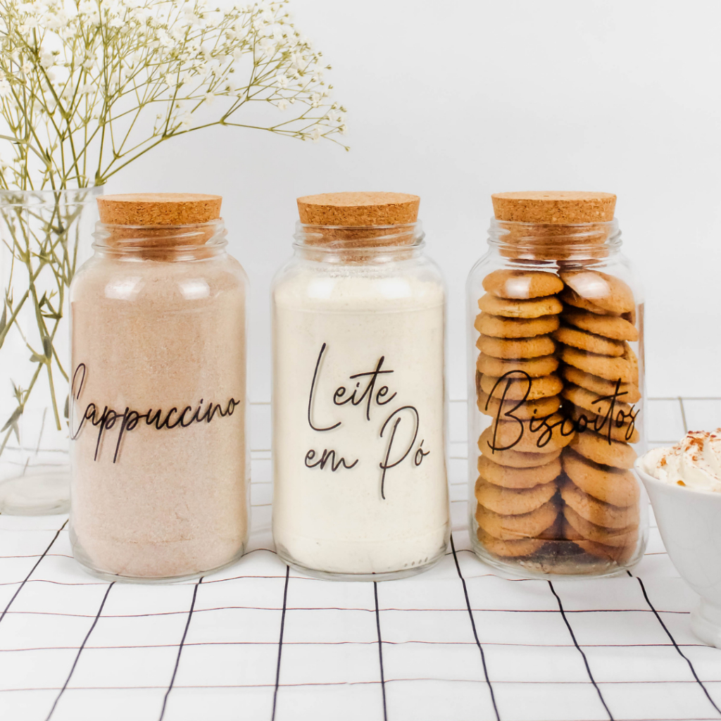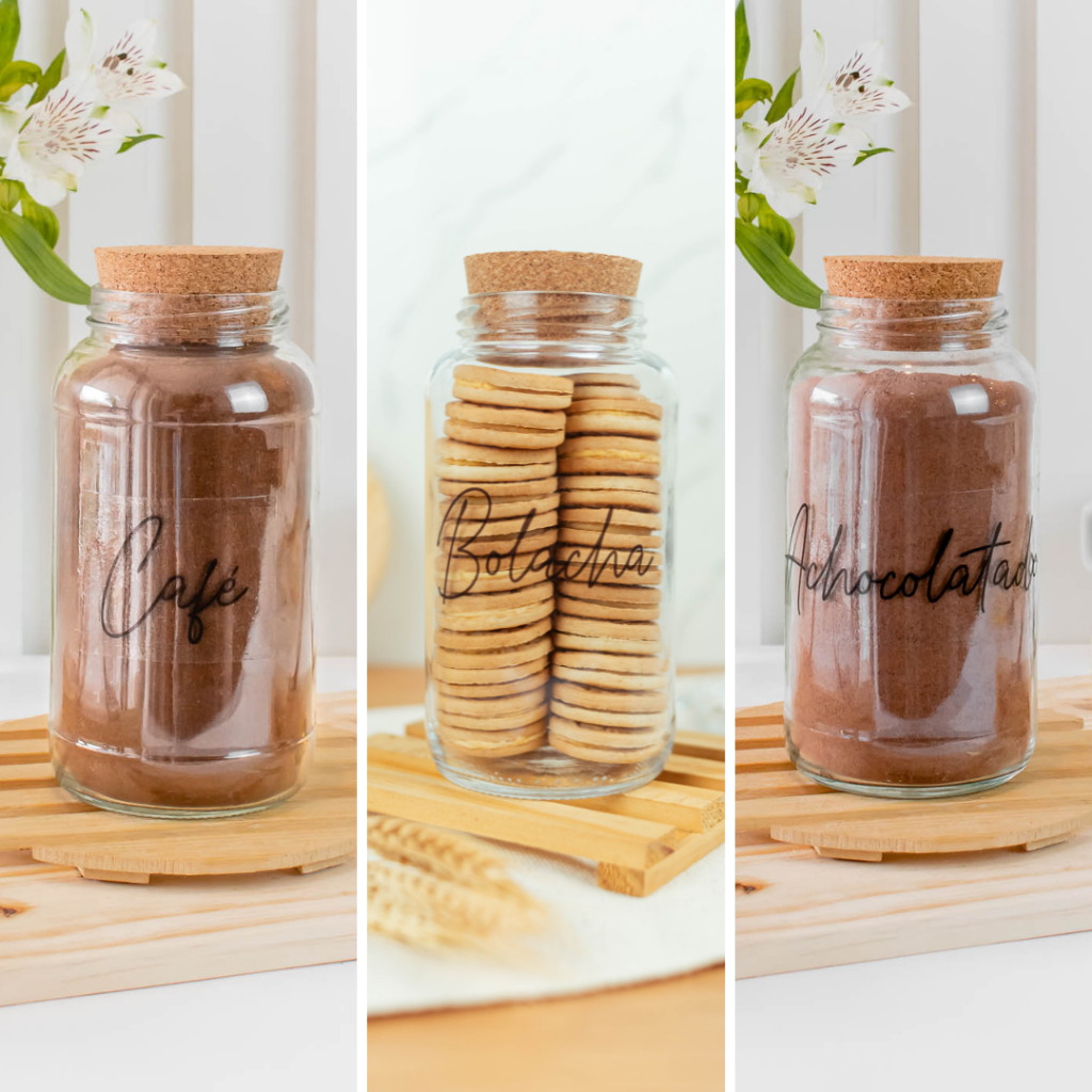 Cantinho do Café 810ml | ESCOLHA SEU KIT | Potes de Vidro | Tampa de Cortiça com KITS e UNIDADES