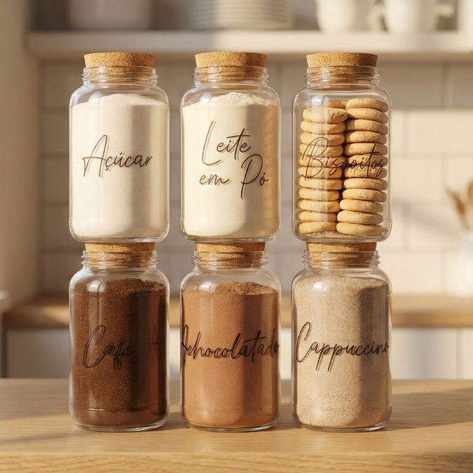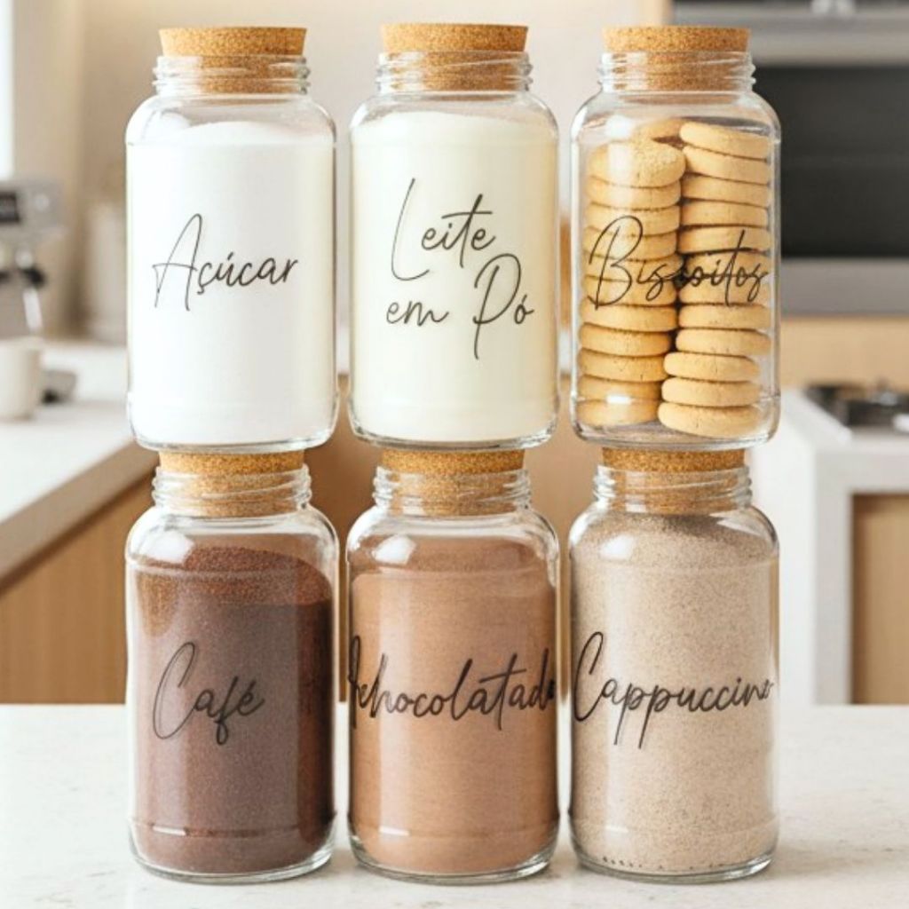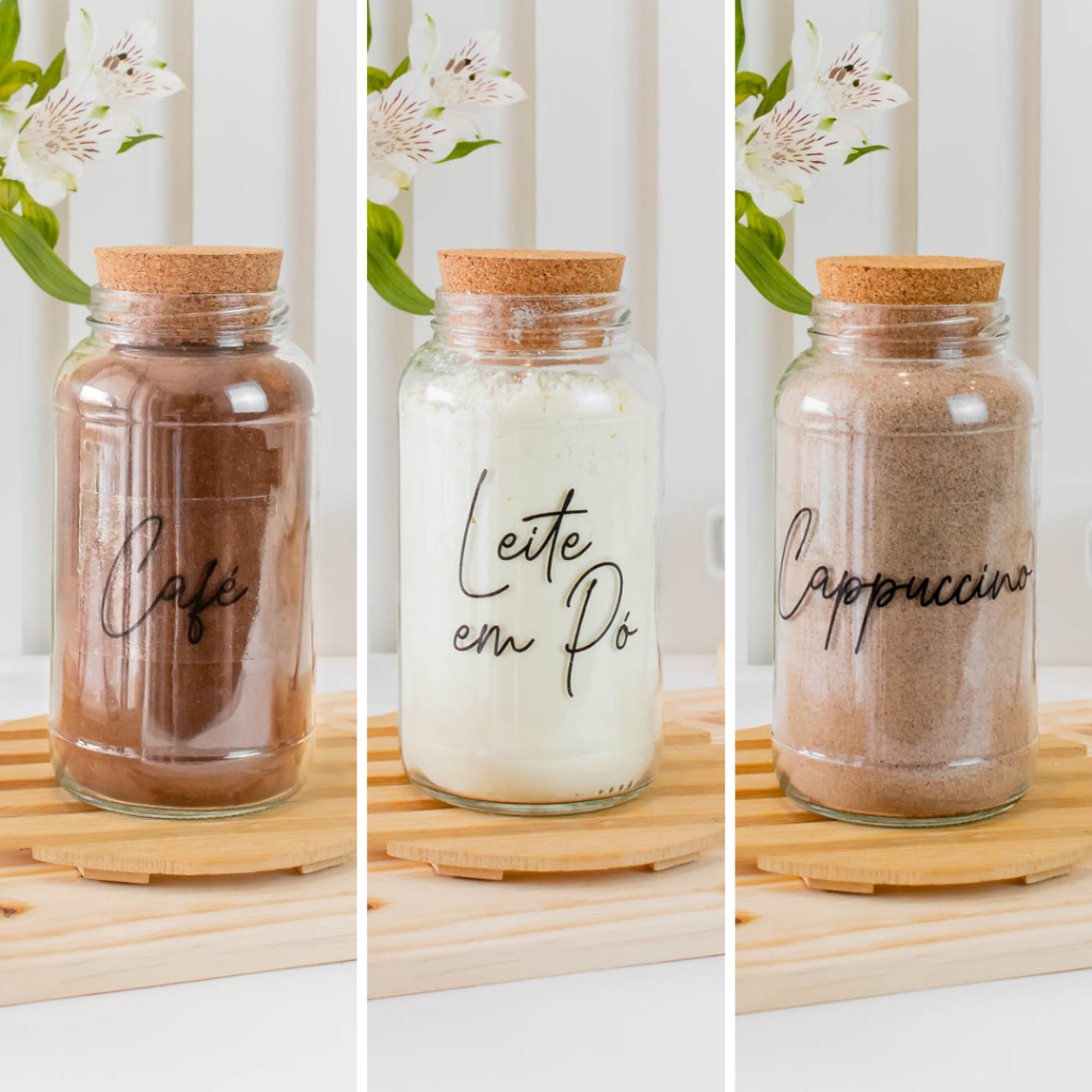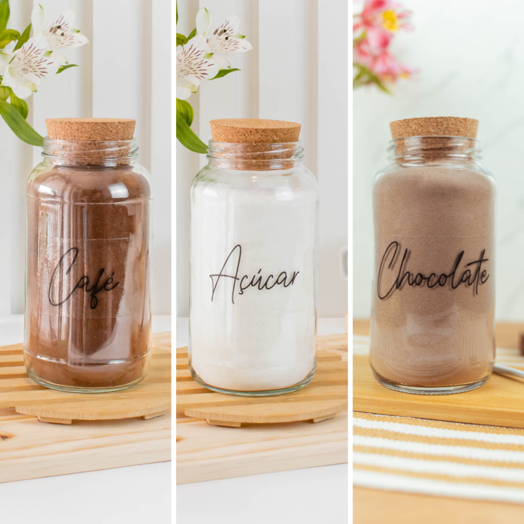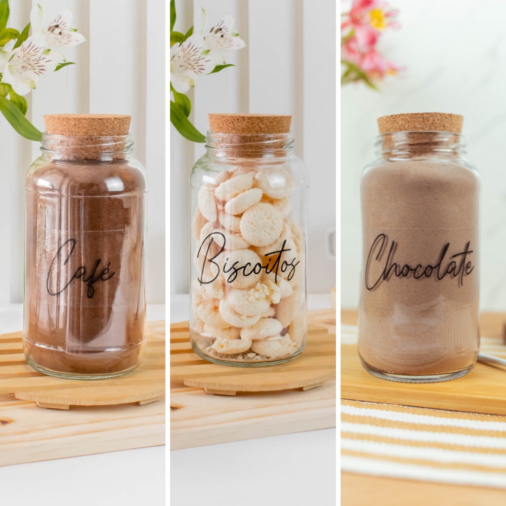 Cantinho do Café 810ml | ESCOLHA SEU KIT | Potes de Vidro | Tampa de Cortiça com KITS e UNIDADES