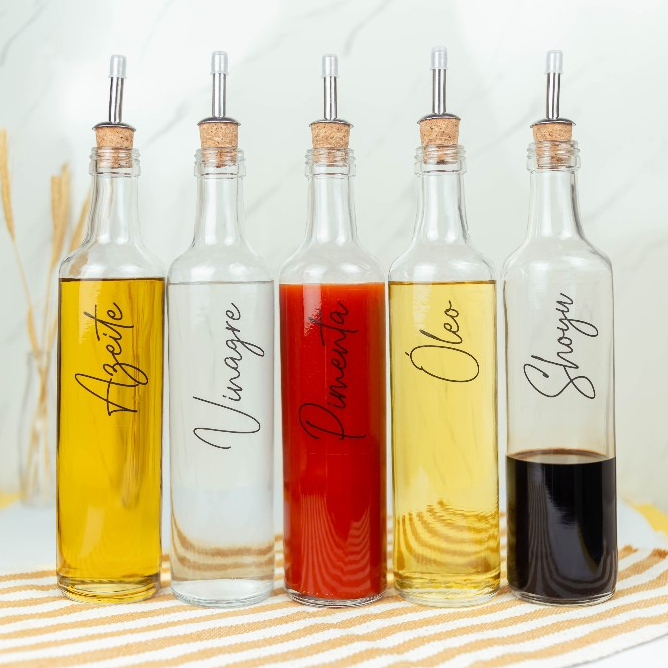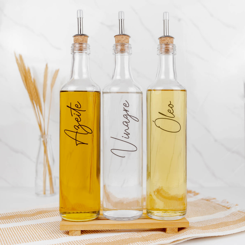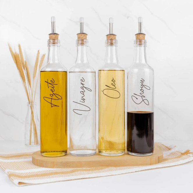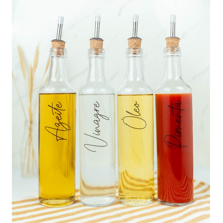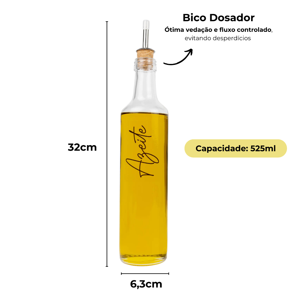 Galheteiro de Vidro 525ml com Bico Dosador Cortiça | Azeite / Vinagre / Óleo / Shoyu / Pimenta