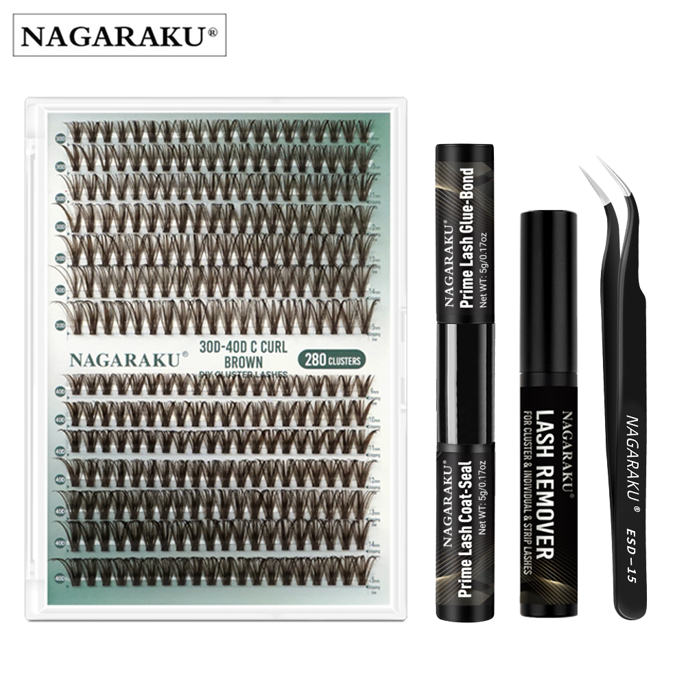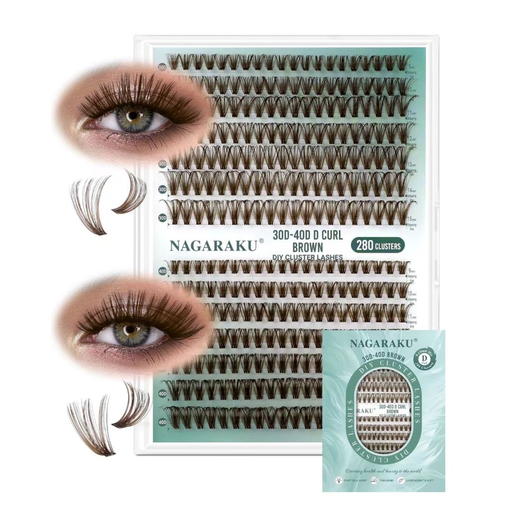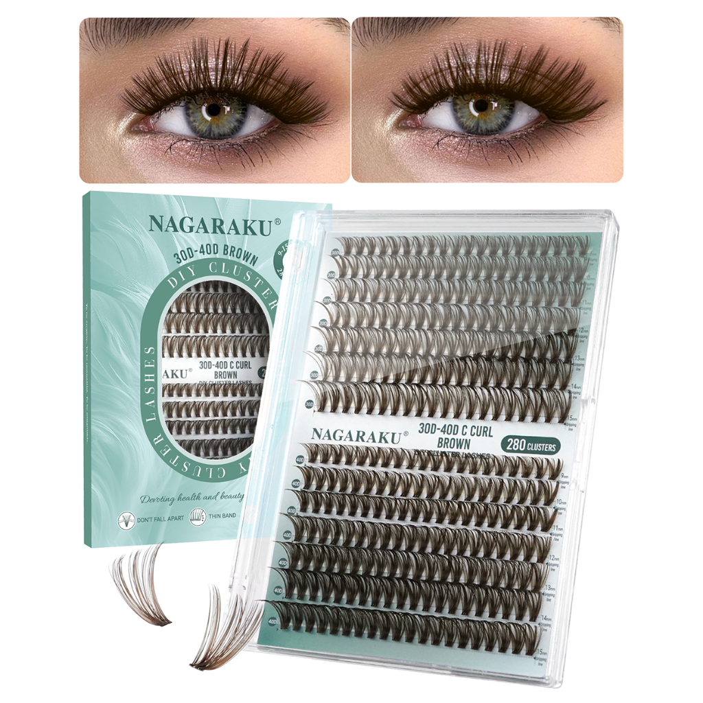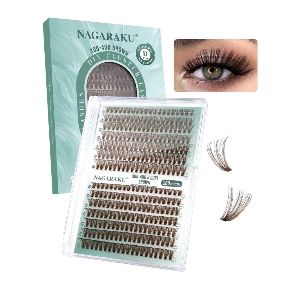 NAGARAKU 30D-40D DIY Cluster Cílios Postiços Fosco Cor Marrom Autoenxertados