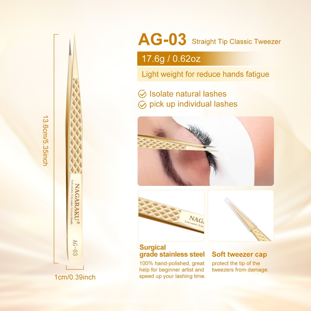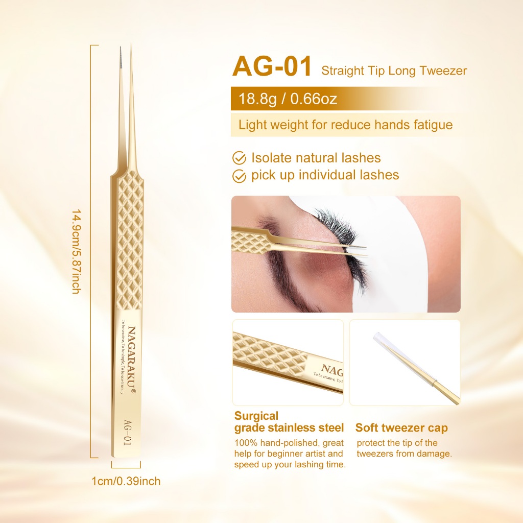 Pinça De Ponta De Fibra De Precisão NAGARAKU Para Extensões De Cílios Profissional Antiestática Reta