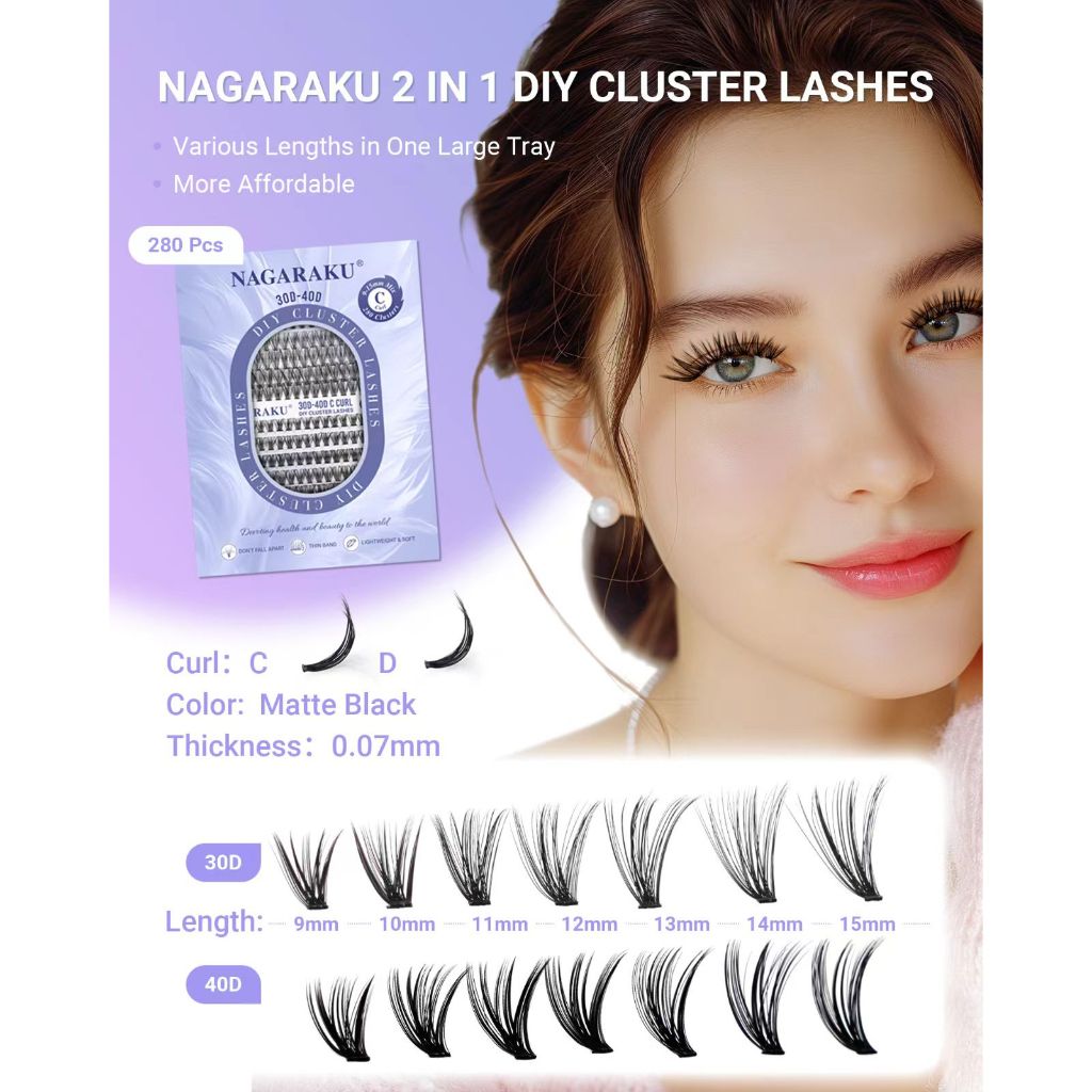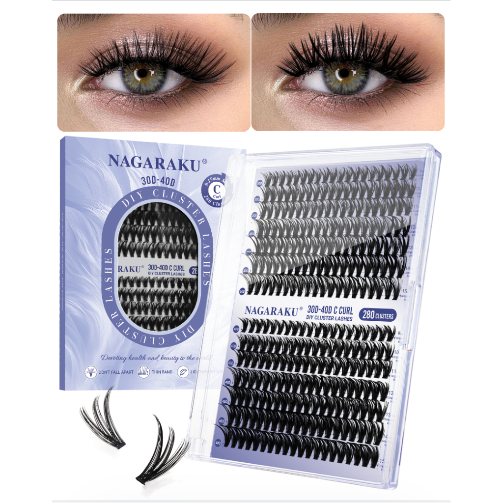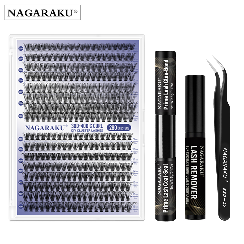 NAGARAKU 30D-40D DIY Cluster Cílios Postiços Preto Fosco Extensões De Adequados Para Iniciantes