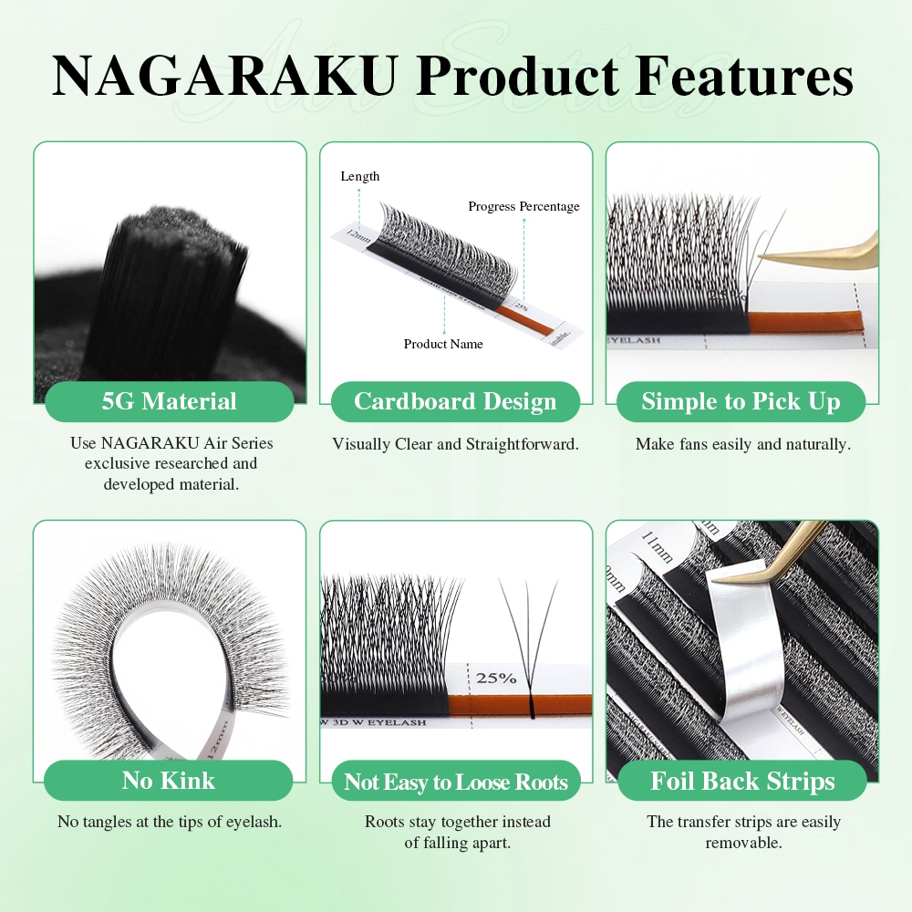 NAGARAKU Estreito W Forma Extensões De Cílios 3D Natural Soft Espaçamento Menor